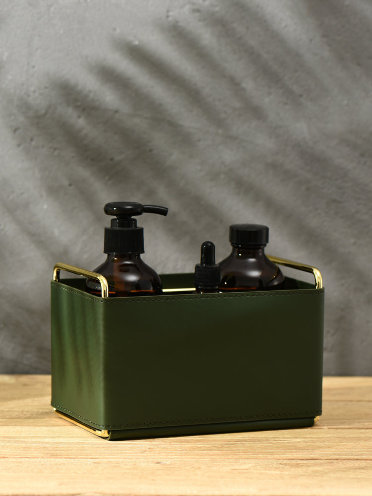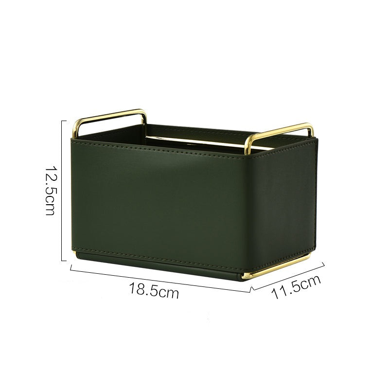 Nordic style light luxury wrought iron leather storage basket cosmetic remote control storage box desktop sundries basket - Iron Leather Storage Basket - Dark Green is backordered and will ship as soon as it is back in stock.