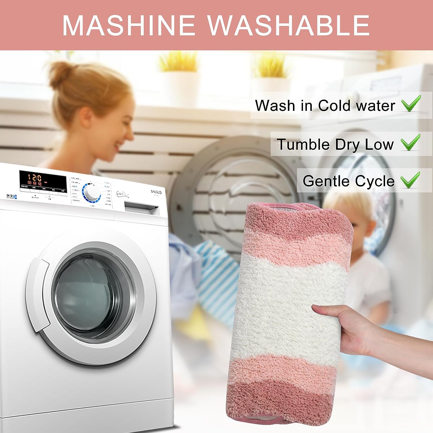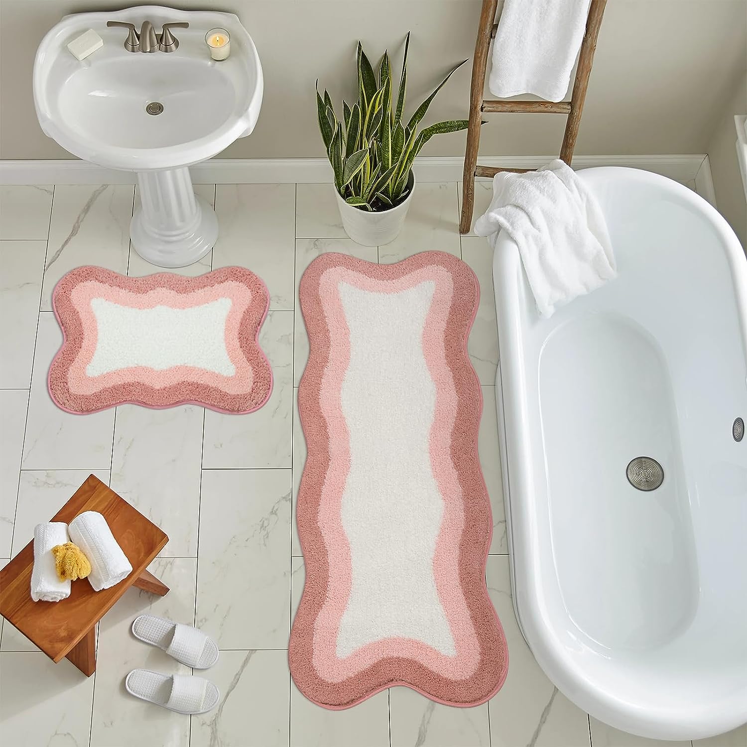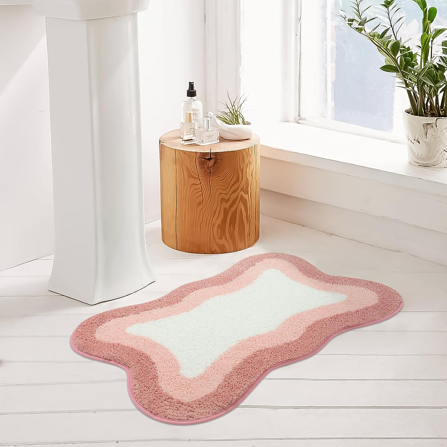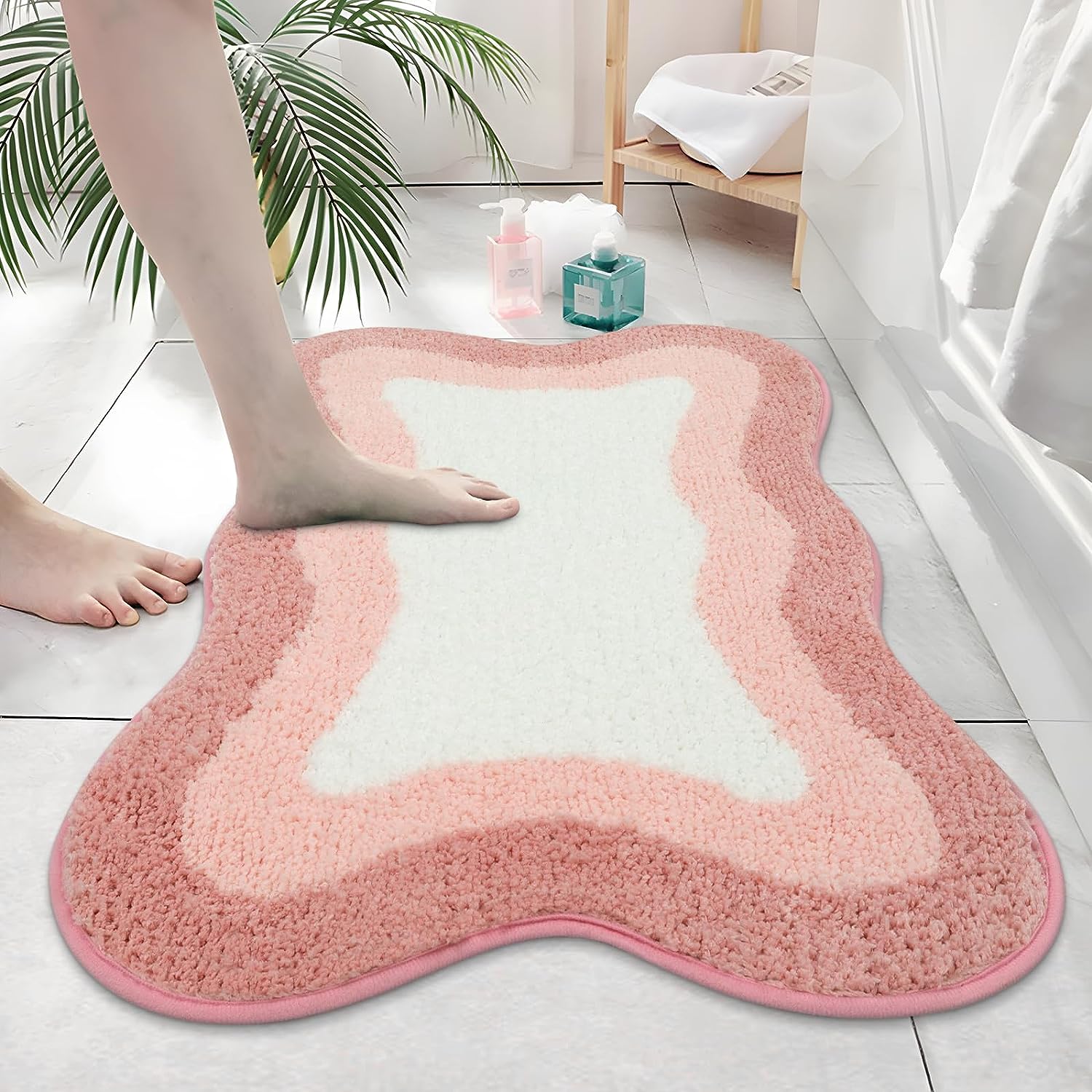 Pink Gradient Bath Mats, Rug for Bathroom, Cute Non-Slip Irregular Shape Carpet for Shower Room