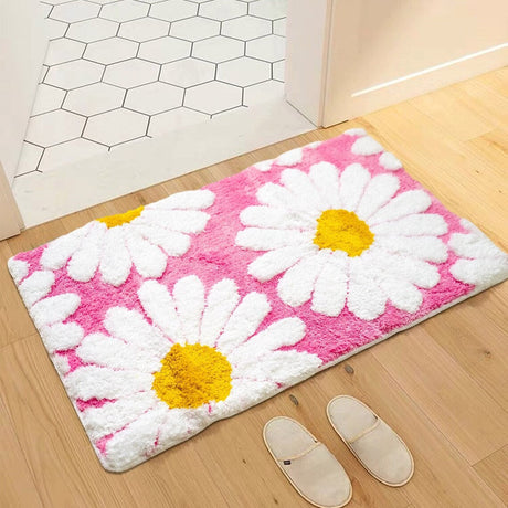 Feblilac Purple Daisy Flower Tufted Bath Mat