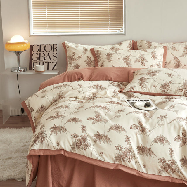 Autumn/Winter Red Cream Reed Leaves bedding set Class A Washable Double Yarn Cotton/Linen Duvet Cover Four-Piece bedding Set
