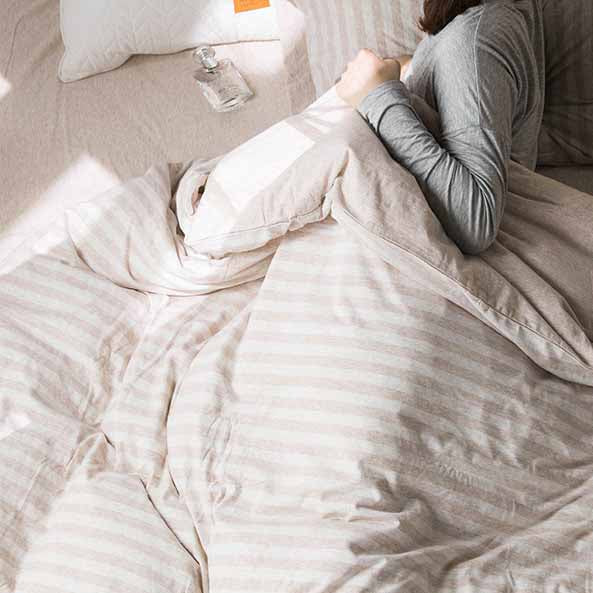 Grey Yarn-Dyed Stripe Knit Fabric Bedding Set Cotton Duvet Cover Bedding Set