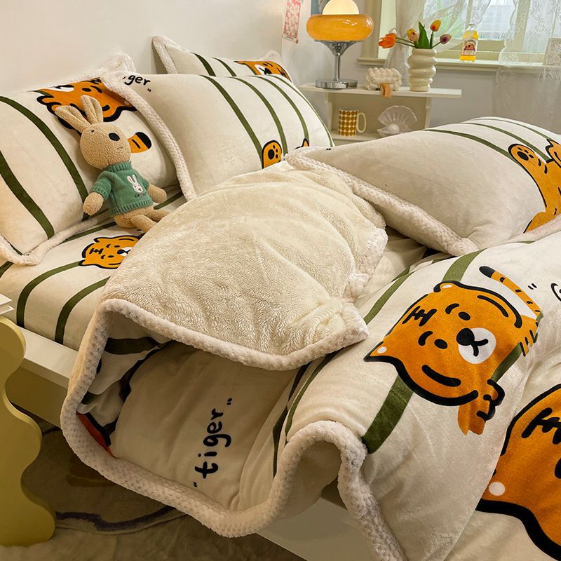 Poly Stripe Tiger Cashmere Flannel Berber Fleece Duvet Cover Bedding Set - 3pcs Set1(sheet): Quilt cover150x200cm or 59"x79"x1 / Bed sheet180x230cm or 71"x91"x1 / Pillowcase48x74cm or 19"x29" x1 is backordered and will ship as soon as it is back in stock.