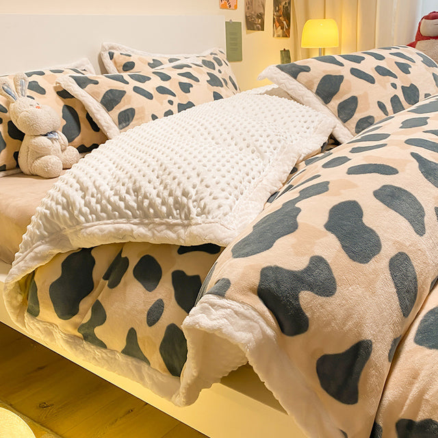 Thickened Leopard Print Flannel Duvet Cover Bedding Set