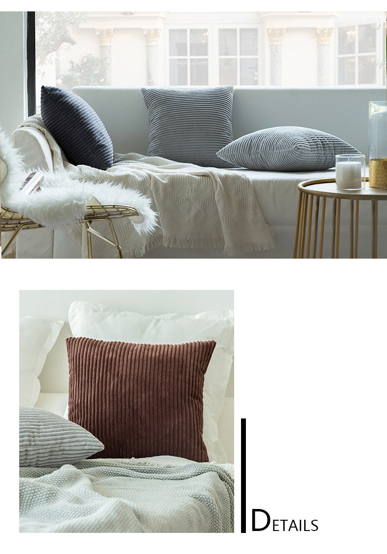 Cushion Covers Super-Soft Striped Velvet Corduroy Home Decorative Pillow Cover For Sofa 45x45cm Decorative Pillow Case