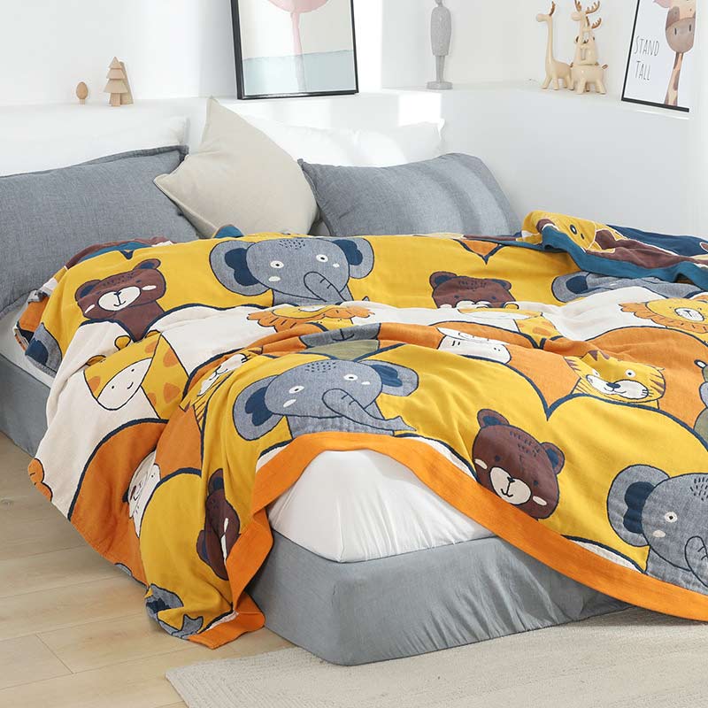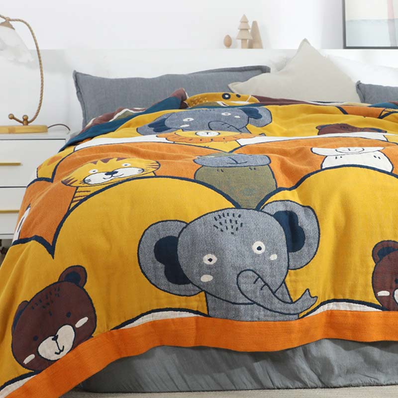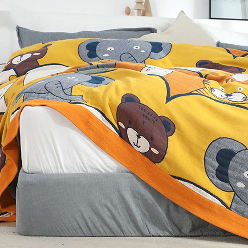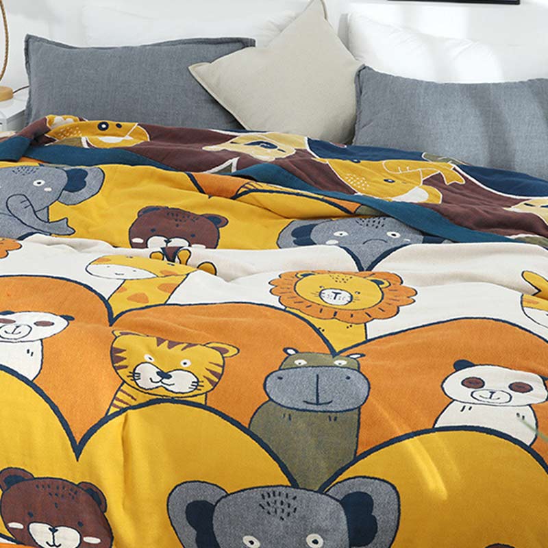 Cotton Quilt brings extra warmth and comfort for an afternoon nap in bed or couch, perfect for indoor and outdoor use to provide constant warmth in chilly weather. This cotton blanket has the cute animal pattern, reversible double side design and neat and overlocked edge, which adds reliable strength for use and wash. Durable for lifetime performance. It is suitable for your kid as a daily blanket.