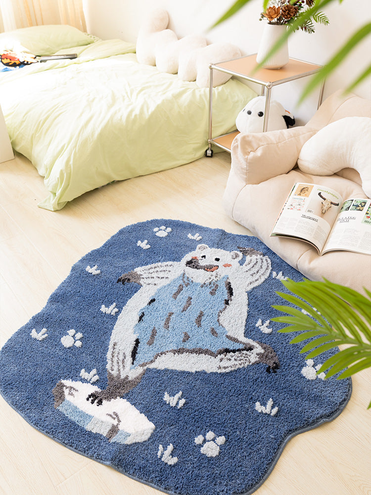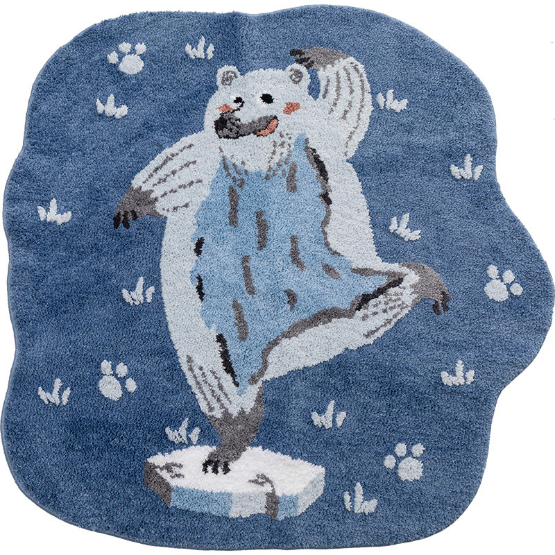 Dancing Polar Bear Bedroom Mat, Cute Cartoon Animal Mat for Kid's Room, Living Room Area Carpet, 43x43 inches