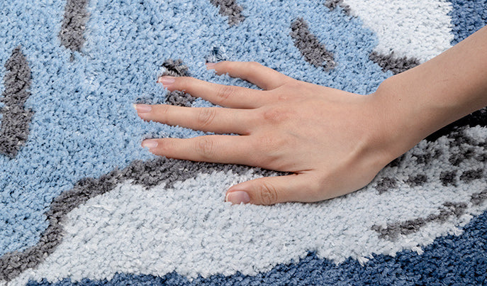 The bath rugs are made of Ultra heavy-density microfiber. Thick and fluffy contact surface offers exceptional comfortable feels to help soothe tired feet, and is super absorbent that helps save your floors from dripping water while you were stepping out of the bath, shower, or getting ready by the sink.