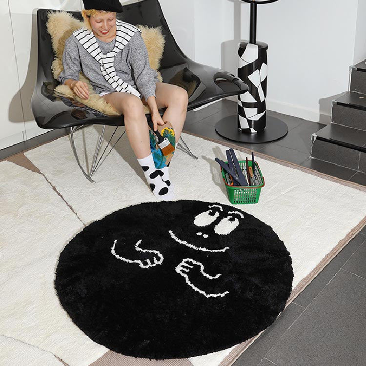 Blue Pink Black Smile Face Bedroom Mat - Black is backordered and will ship as soon as it is back in stock.