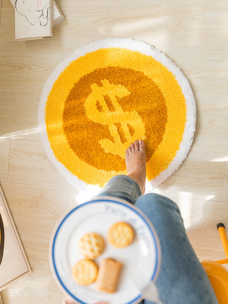 Cartoon Coin Bedroom Mat, Funny Mat for Living Room, Bathroom Area Carpet