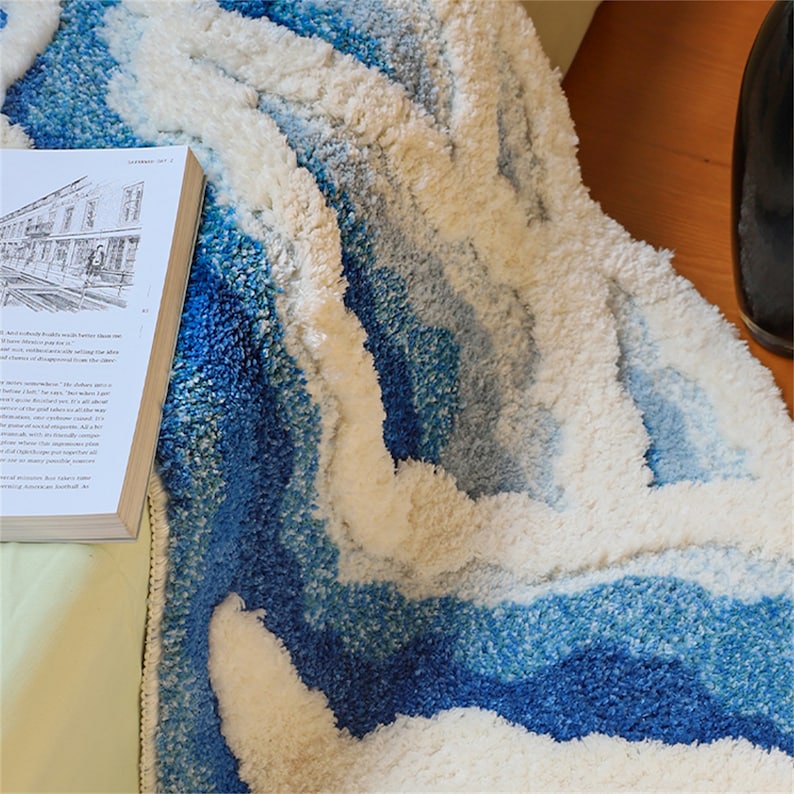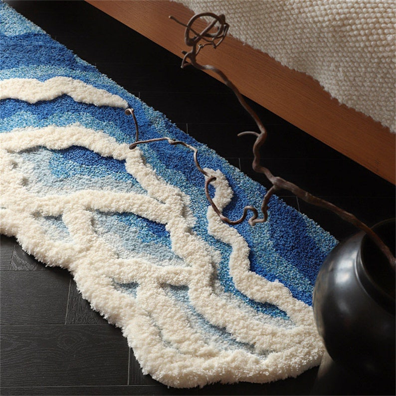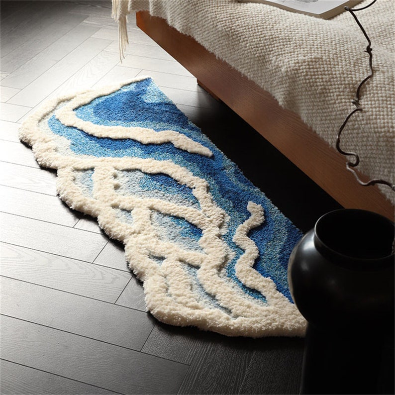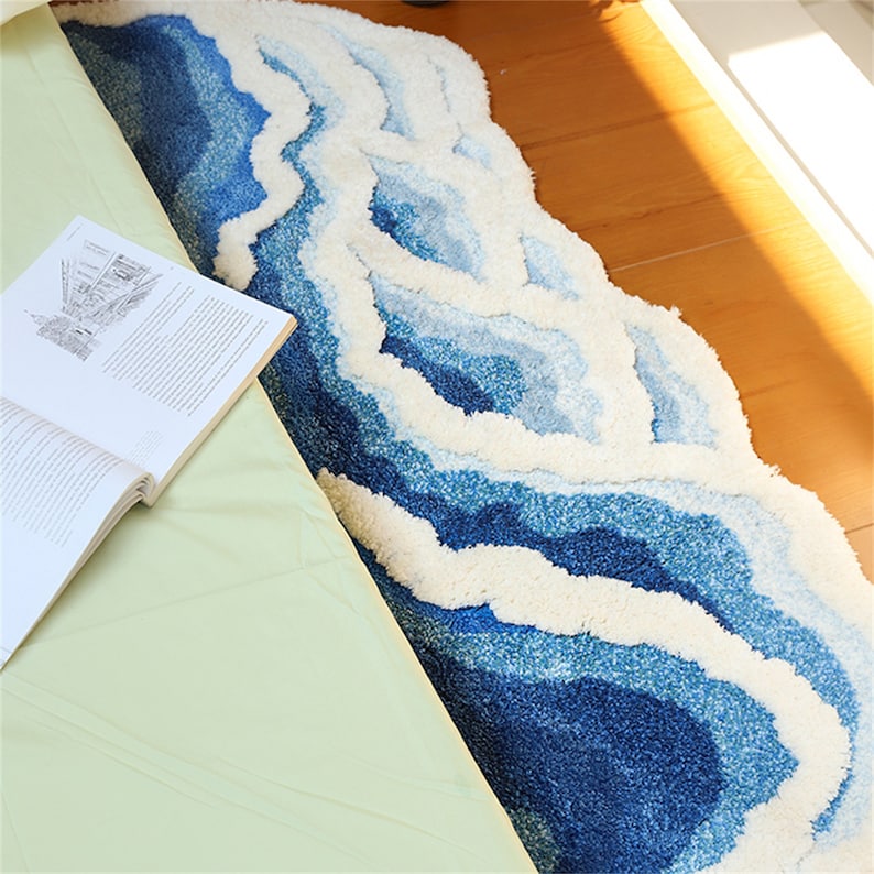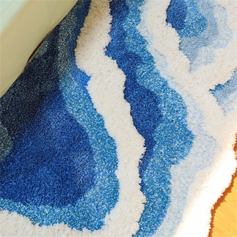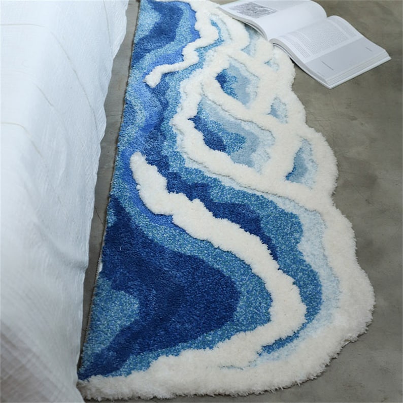 Feblilac Blue Ocean Wave Bedroom Rug Long Runner