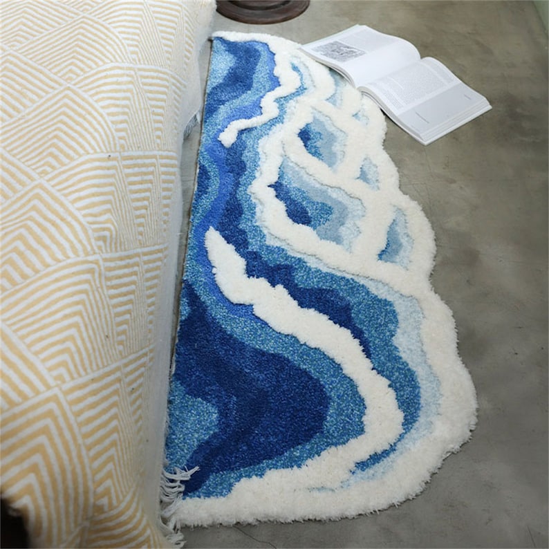 Feblilac Blue Ocean Wave Bedroom Rug Long Runner - 23.6''*47''=60*120 cm is backordered and will ship as soon as it is back in stock.