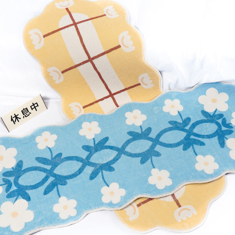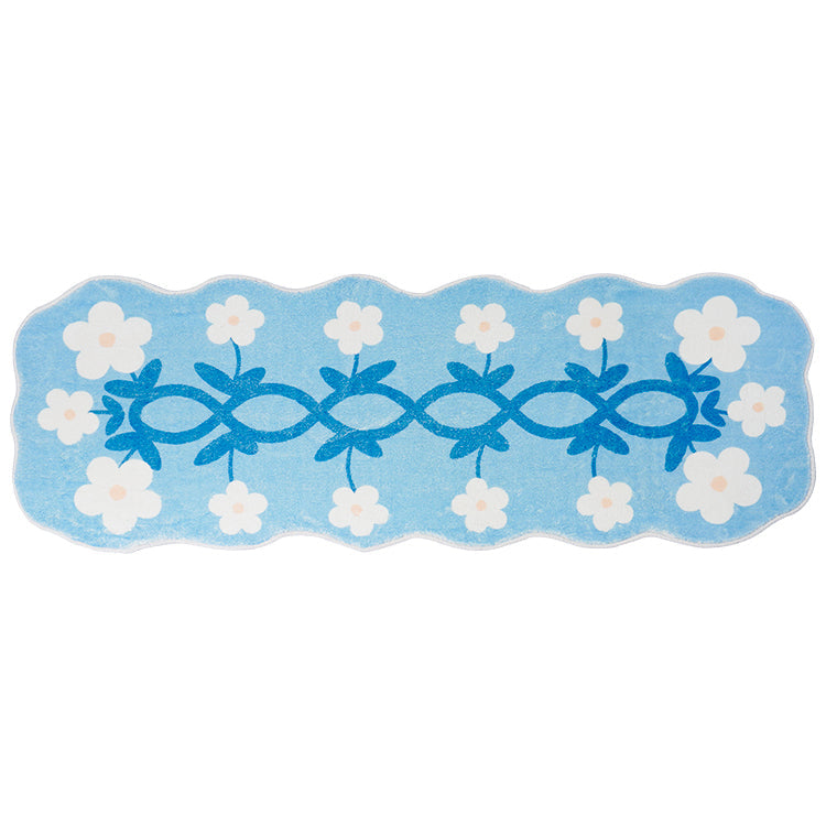 Add a fresh atmosphere to your bathroom with this White Flower Blue Runner.