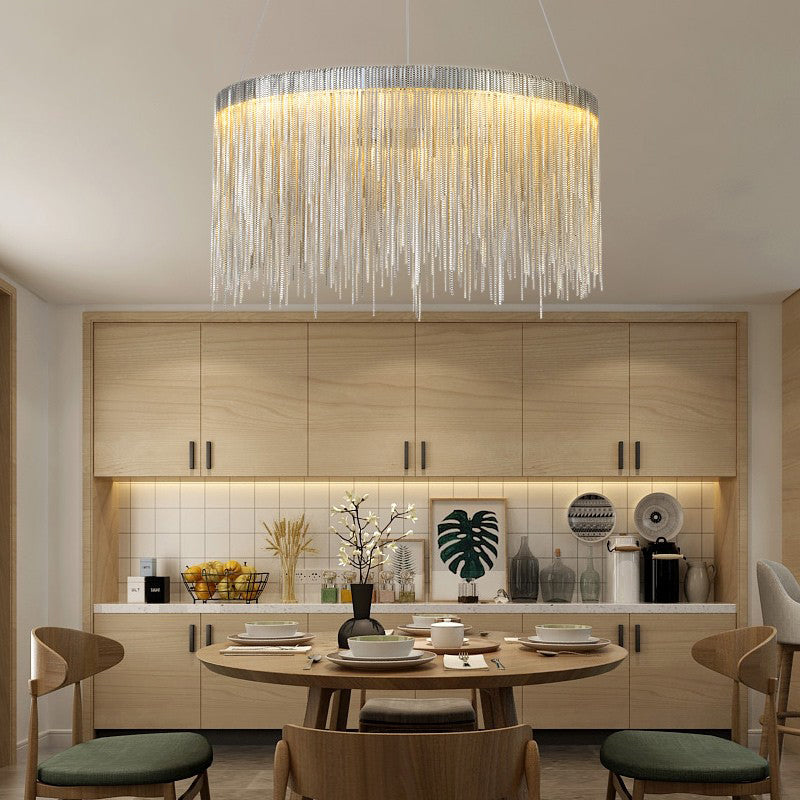 Aluminum chain Stream chandelier - Round Size:Dia 40 cm x H 35 cm/∅ 15.8 in x H 13.8 in / Chrome / 6000K Cool White is backordered and will ship as soon as it is back in stock.