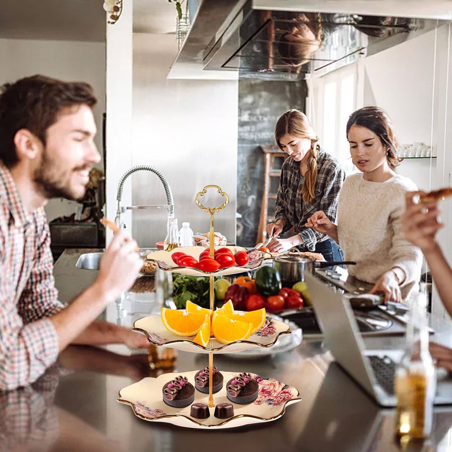 1. 3 tier plates make it possible to contain different fruits, desserts, cupcakes, crackers, finger sandwiches and other finger foods on different tiers.