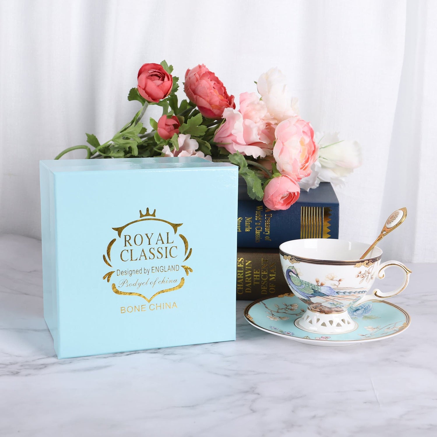 TEA CUP CAPACITY&SIZE:Coffee Cup:2.95"x3.94 ",saucer's length: 6.1",spoon length:5".Capacity:cup:6.76oz.Please check the size & volume before order it.