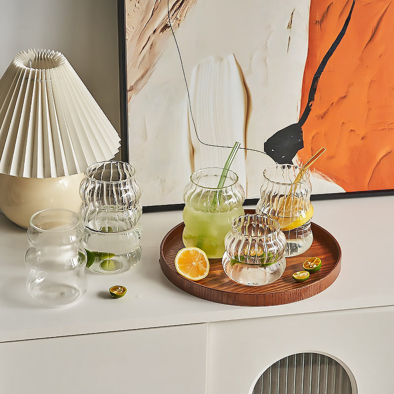 This Borosilicate Ribbed Glass Cup offers a unique and beautiful design crafted from a heat-resistant and durable material. Its ribbed surface is crafted from premium borosilicate glass, perfect for practical and stylish beverage solutions.