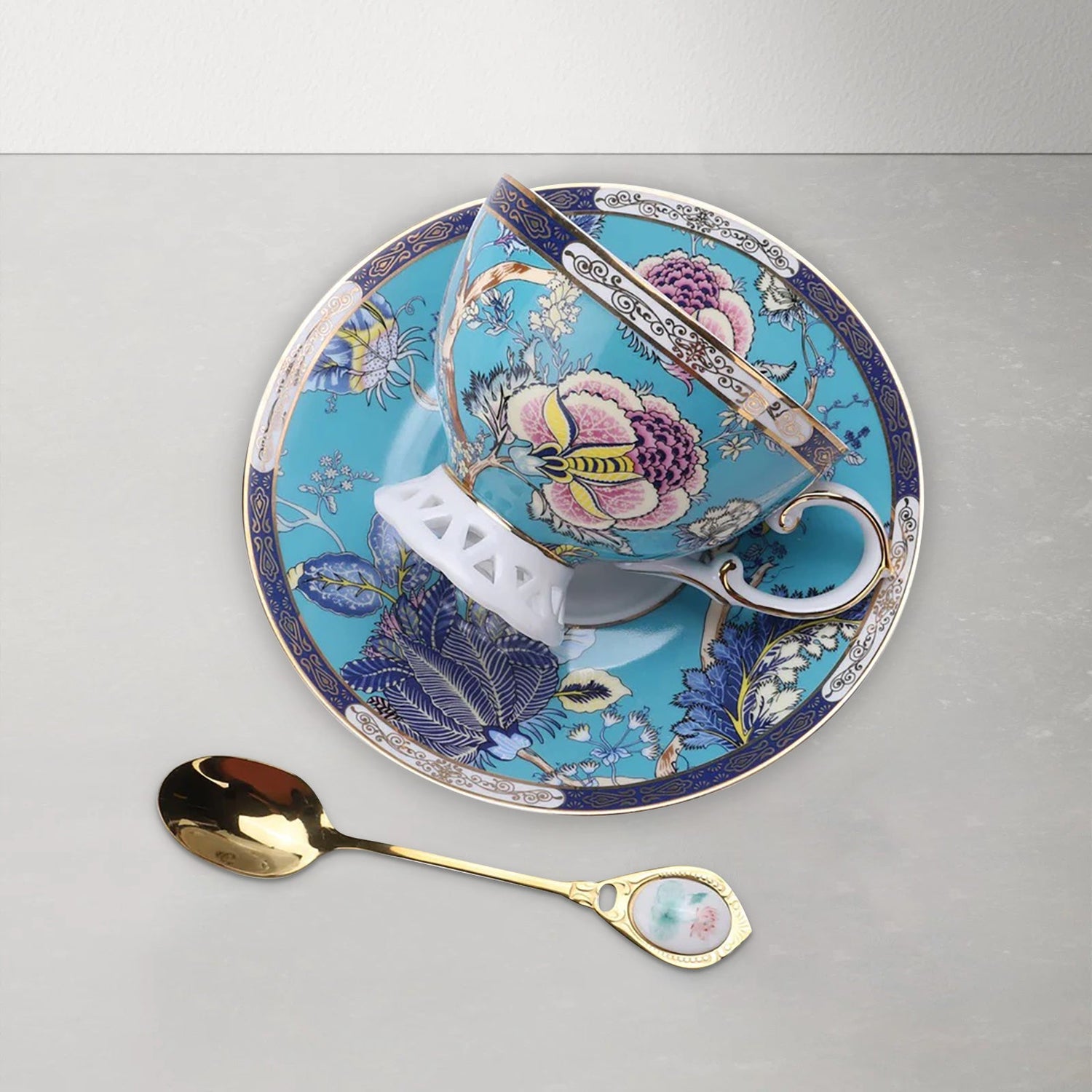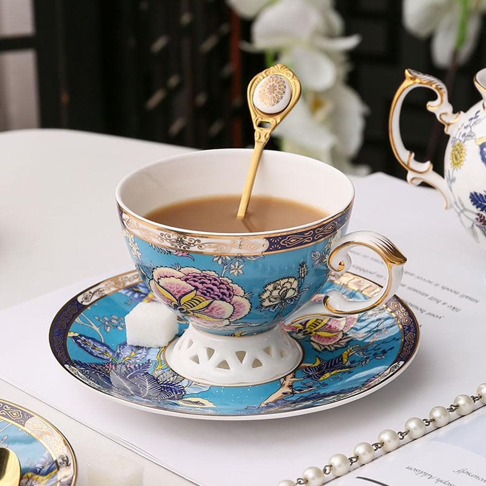 TEA SET CAPACITY&SIZE:Tea Cup:3.94"x2.95",Saucer:5.9";Capacit:Tea Cup:6.76oz;Please check the size & volume before order it.