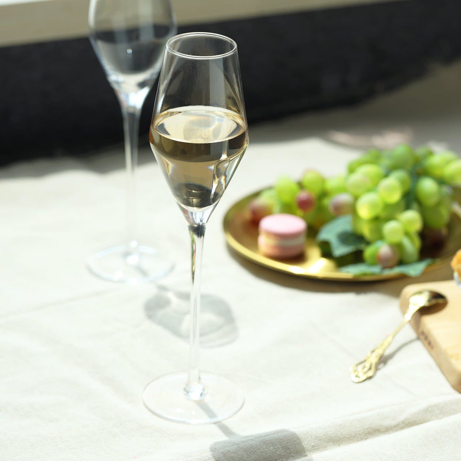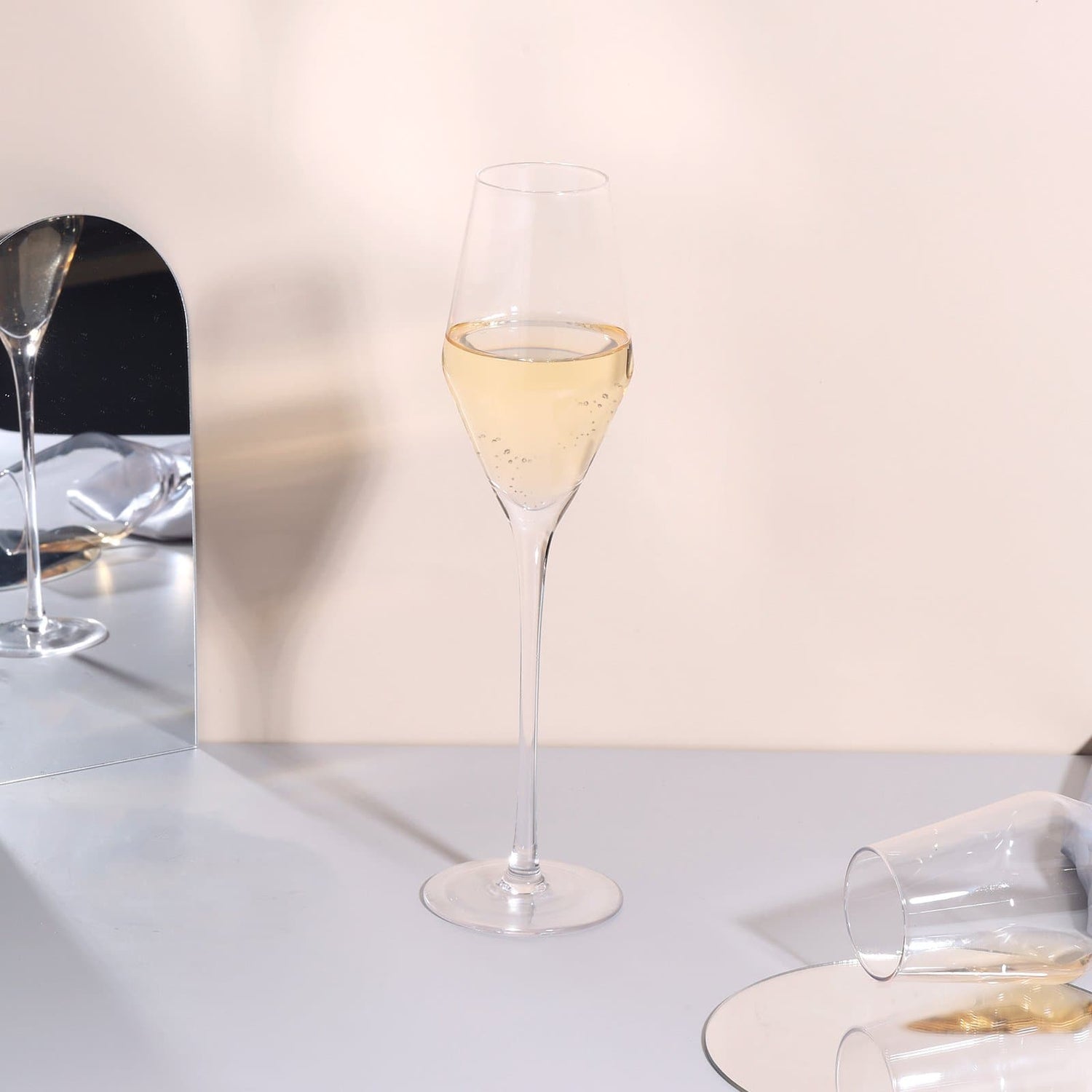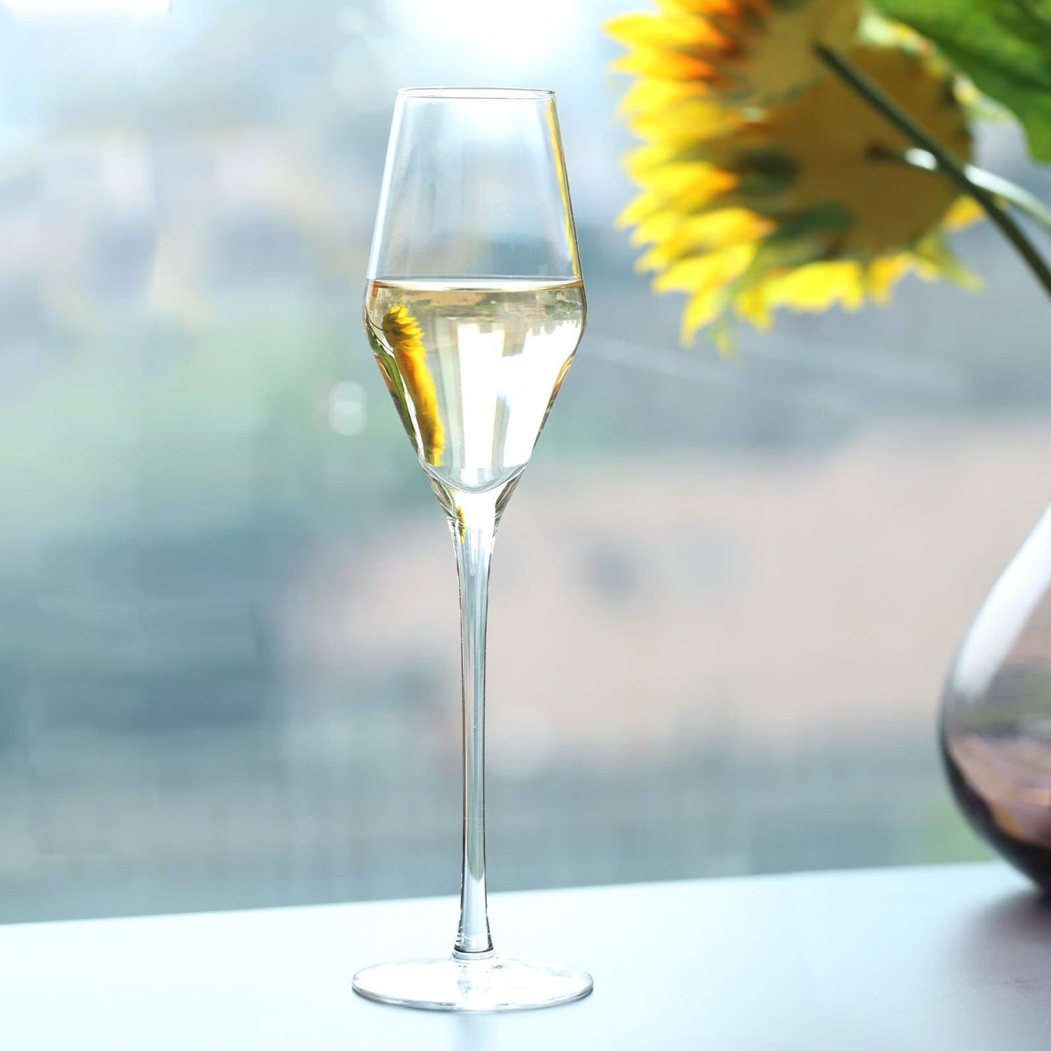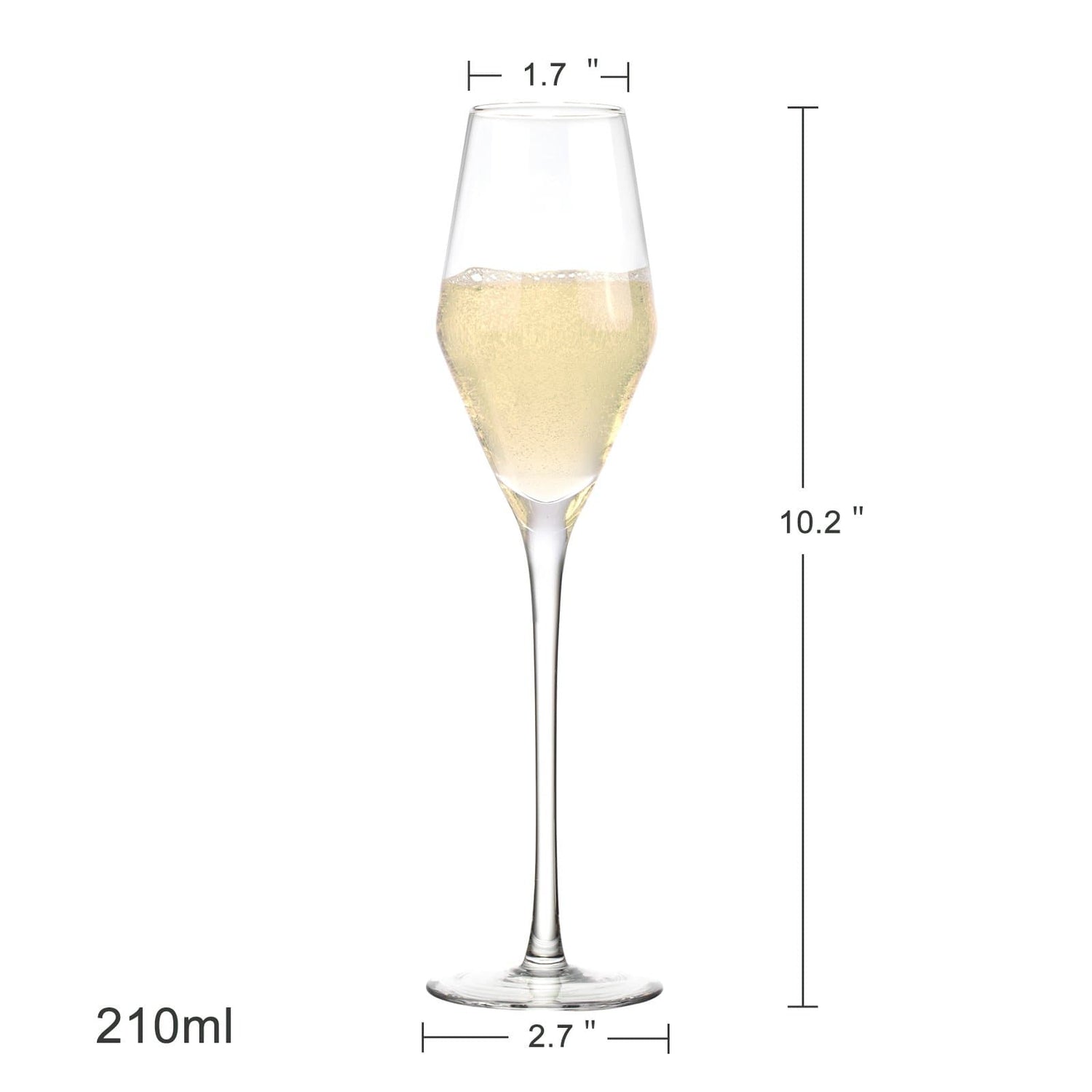--Features: Thanks to the exquisite craftsmanship, they are clear and smooth. The fine glass goblet can make the bubbles slowly leave the glass, allowing you to enjoy the taste of champagne for longer.