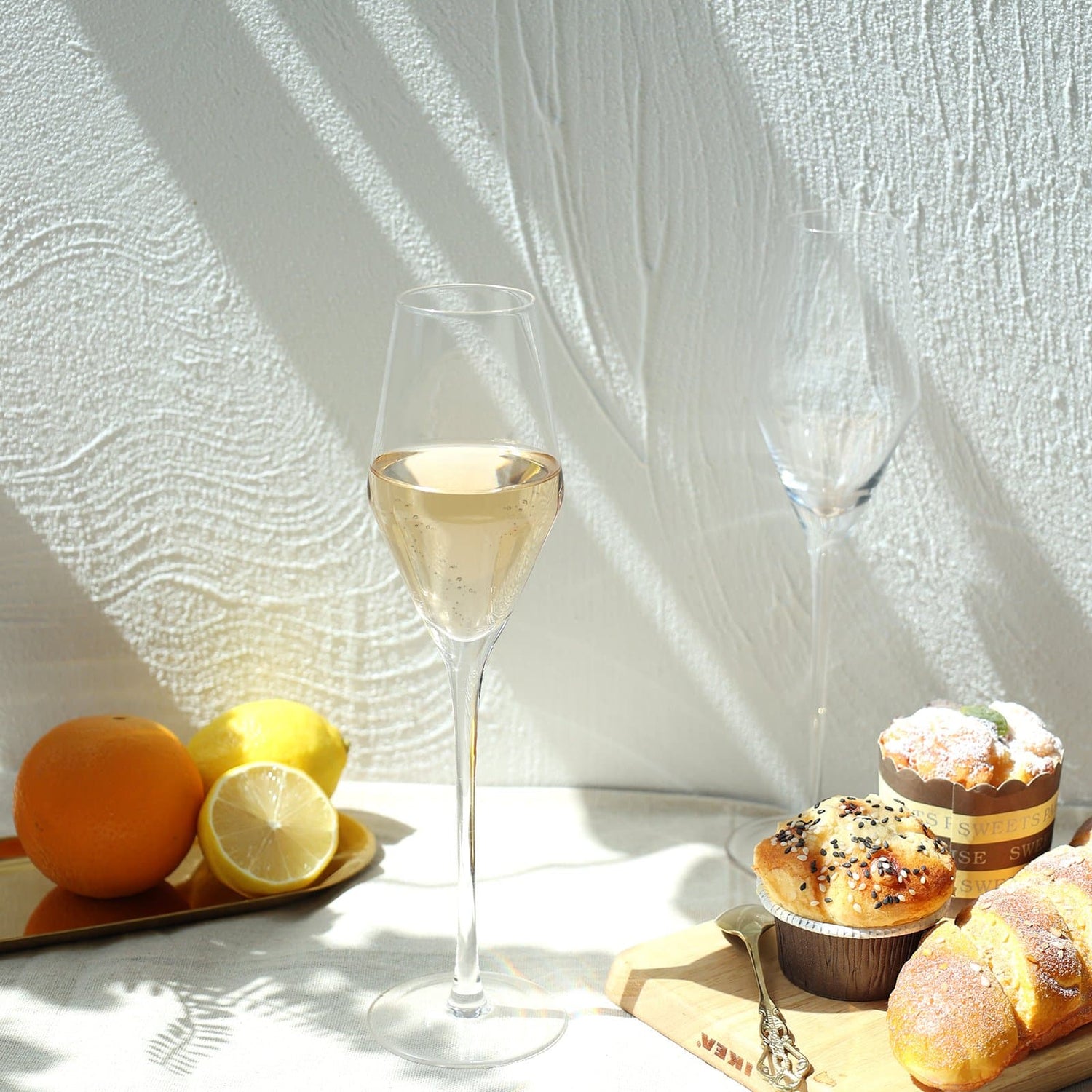 -- Design: This tulip-shaped champagne glass is conducive to the emission of bubbles and aroma. With a wide waist so that the sparkling wine can breathe optimally. Allowing you is a pleasure in the visual and taste.