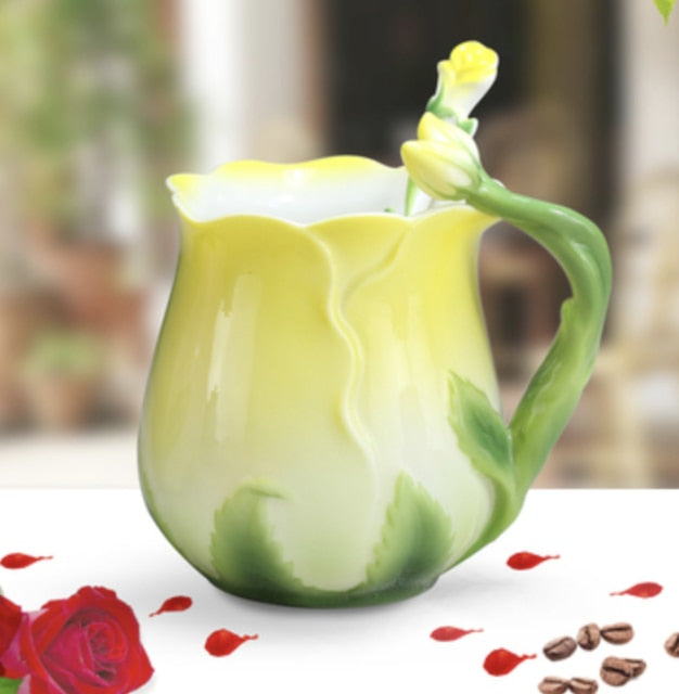 Make any tea or coffee time special with this pretty petal flower cup. The cup embraces the beauty of flower petals giving it a delicate and romantic look. It comes with a matching spoon that completes the fresh and flowery look of this beautiful cup. Tea time and the beauty of flowers will make any tea time extra special.