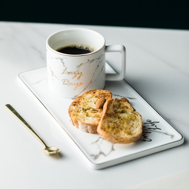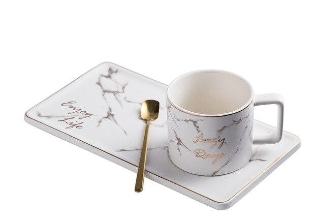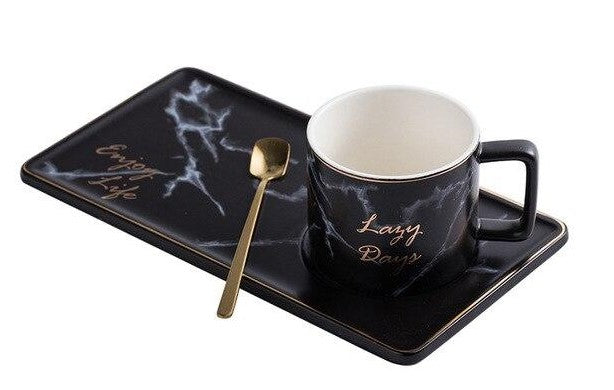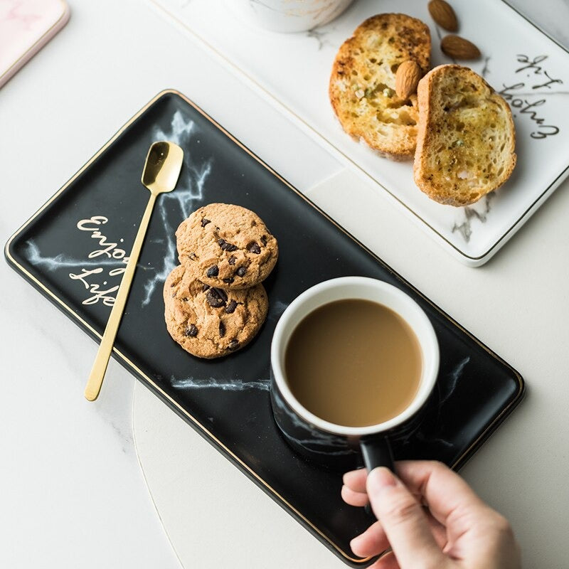 Take a break and have snack with this sophisticated mug and plate set. The set even comes with its own gold spoon to give the set a hint of elegance. The set is the perfect size for your favorite snack while sipping on your favorite coffee or tea. The snack tray has the words, “Enjoy Life” which is a daily reminder about enjoying the simple pleasures of life. Any time is snack time with this set.