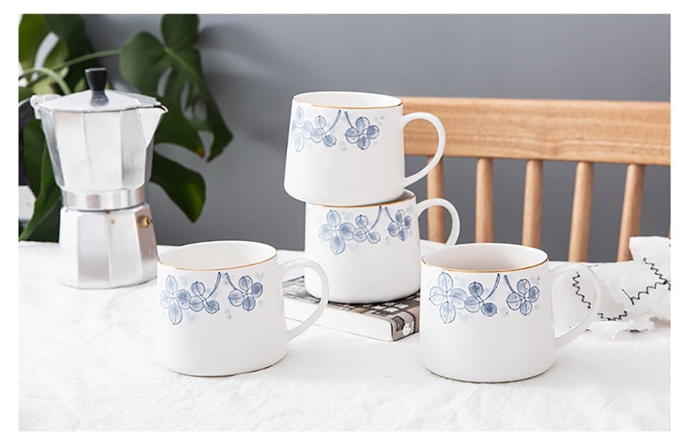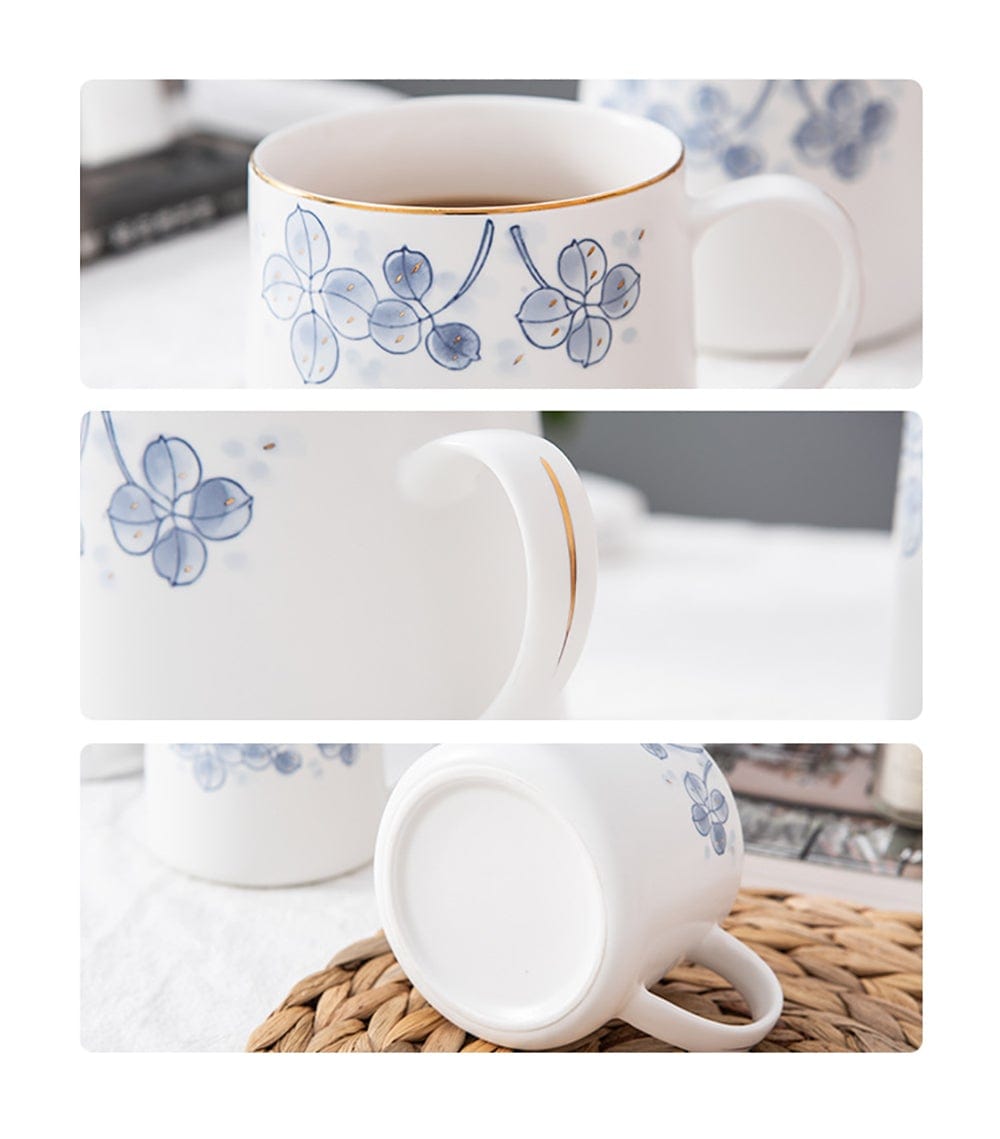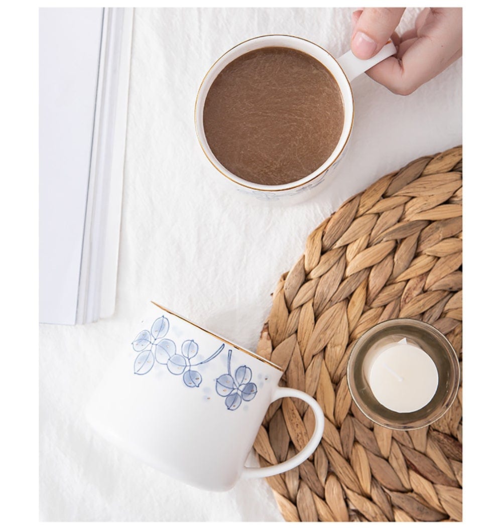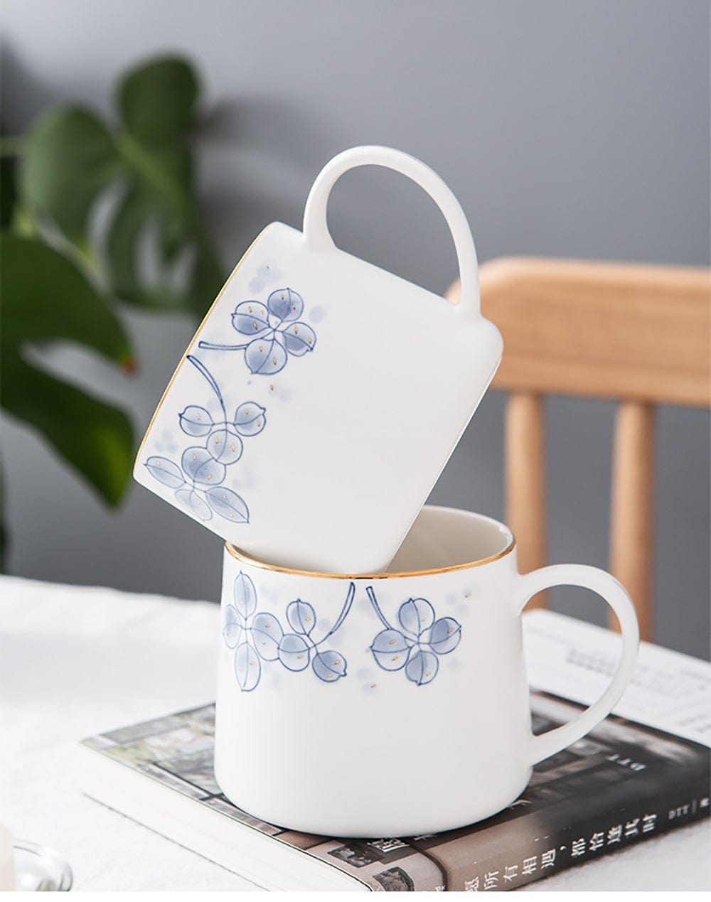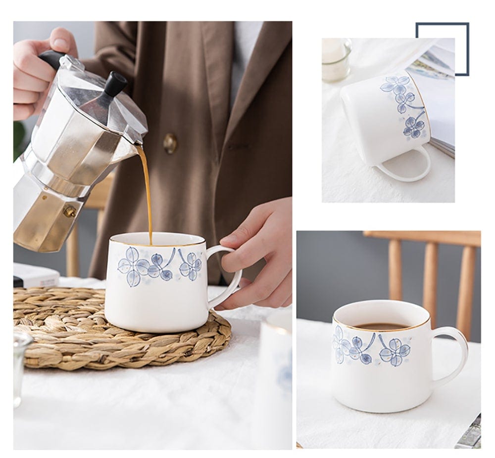 About: This coffee cup is made of porcelain and features a floral and a golden detail edge design making it the perfect kitchenware.
