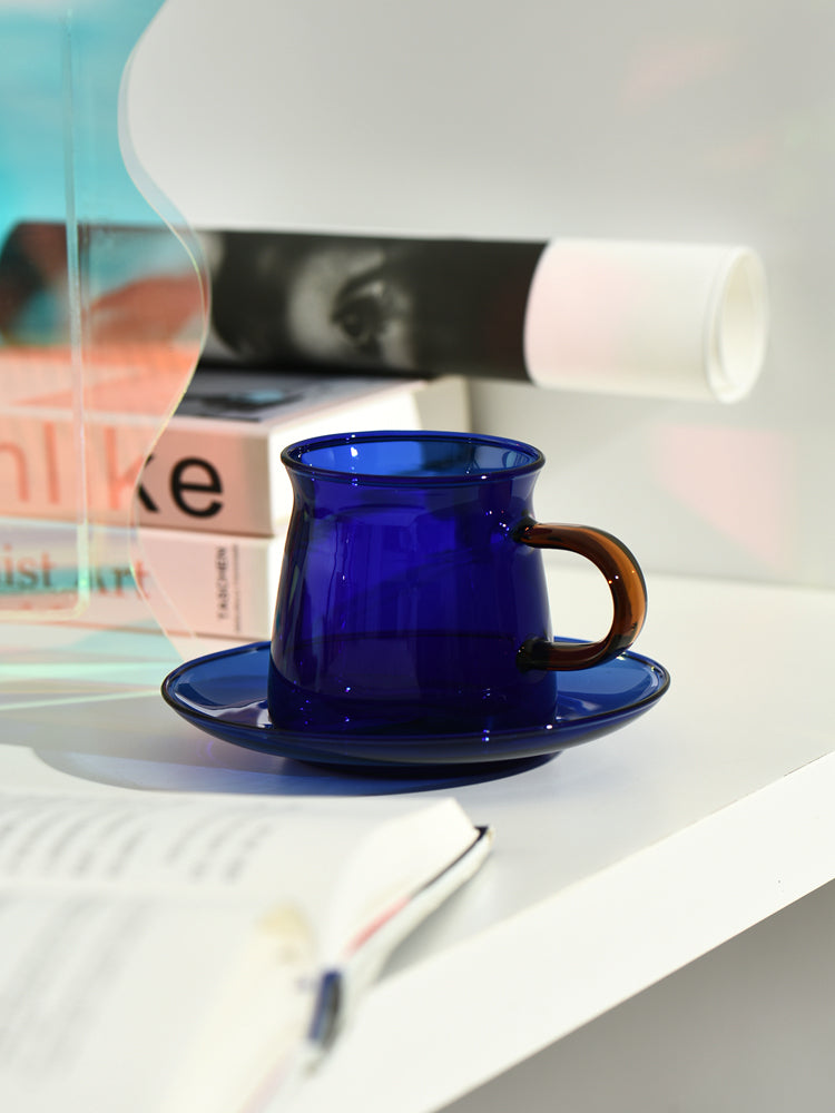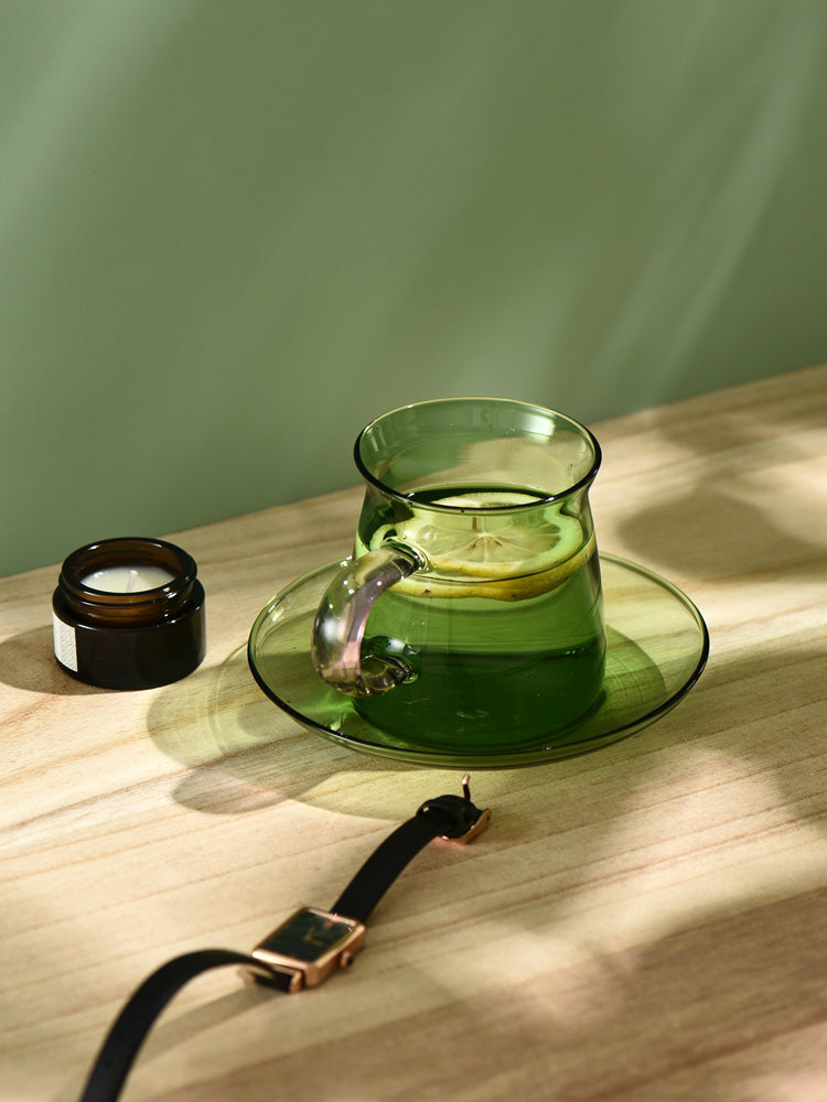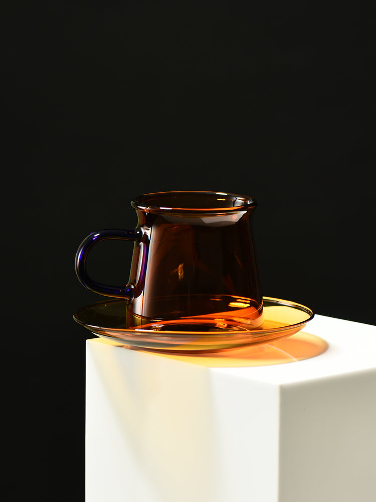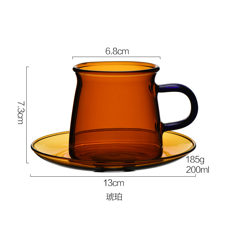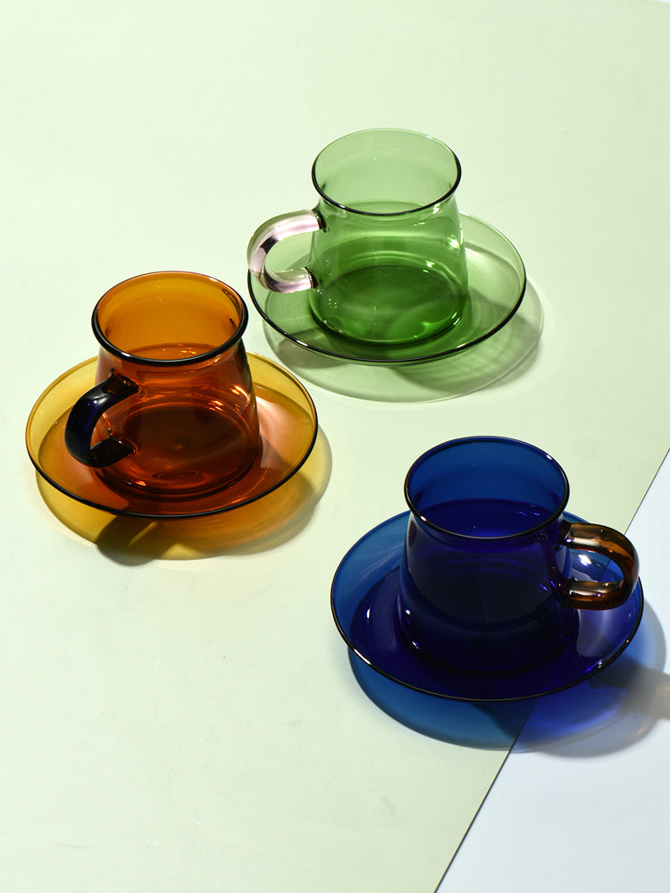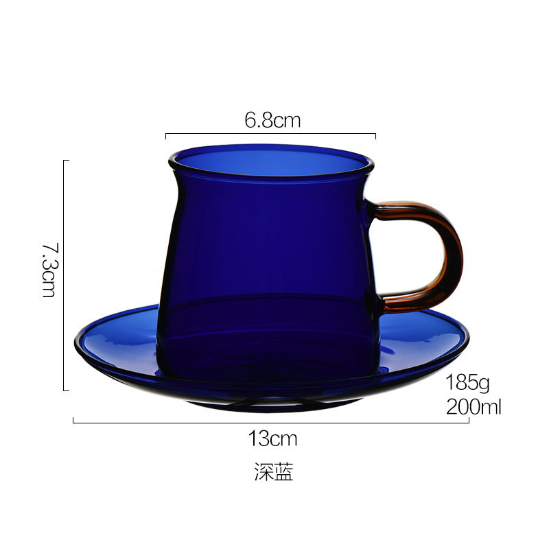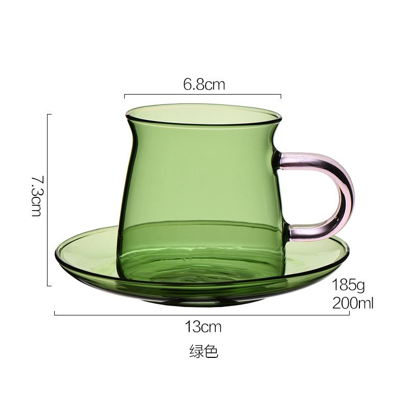 Nordic style colored glass coffee cup saucer heat-resistant breakfast cup milk cup tea cup high-value cup
