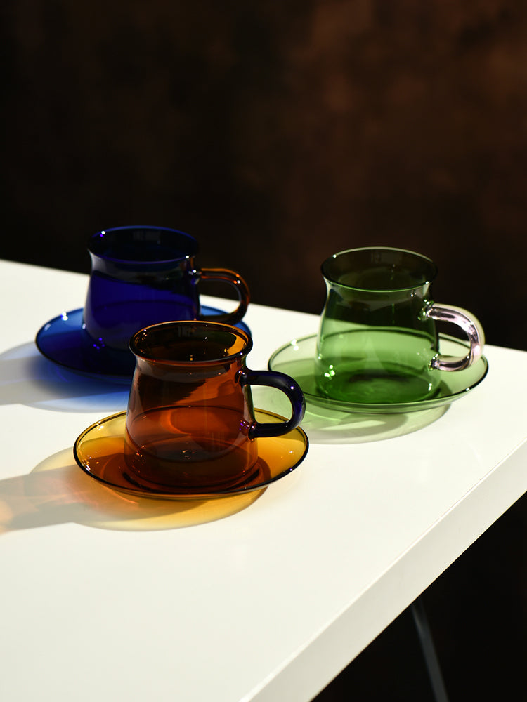• Color classification: Color coffee cups and saucers - green color coffee cups and saucers - amber color coffee cups and saucers - dark blue