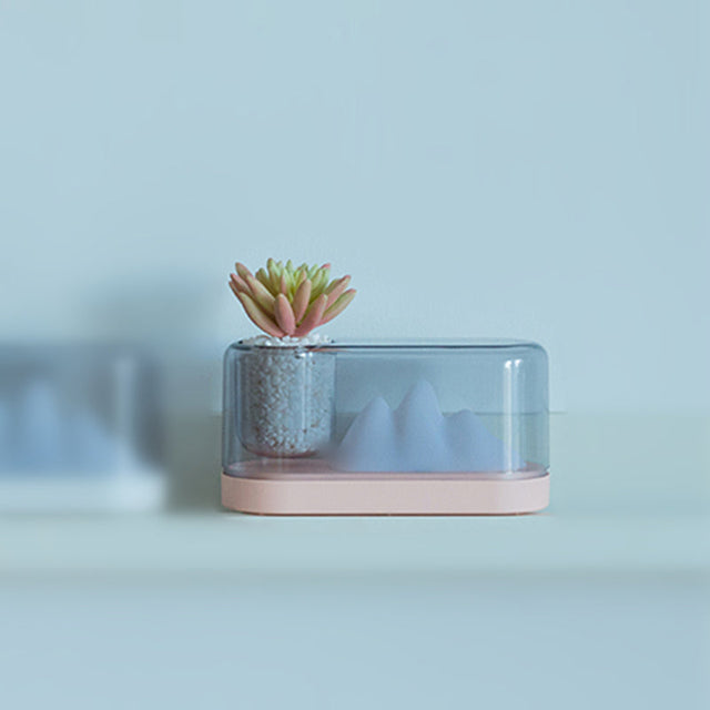 Plastic Mountain Shaped Night Light Artistic Rechargeable LED Table Lamp with Oval Cover and Storage Cup