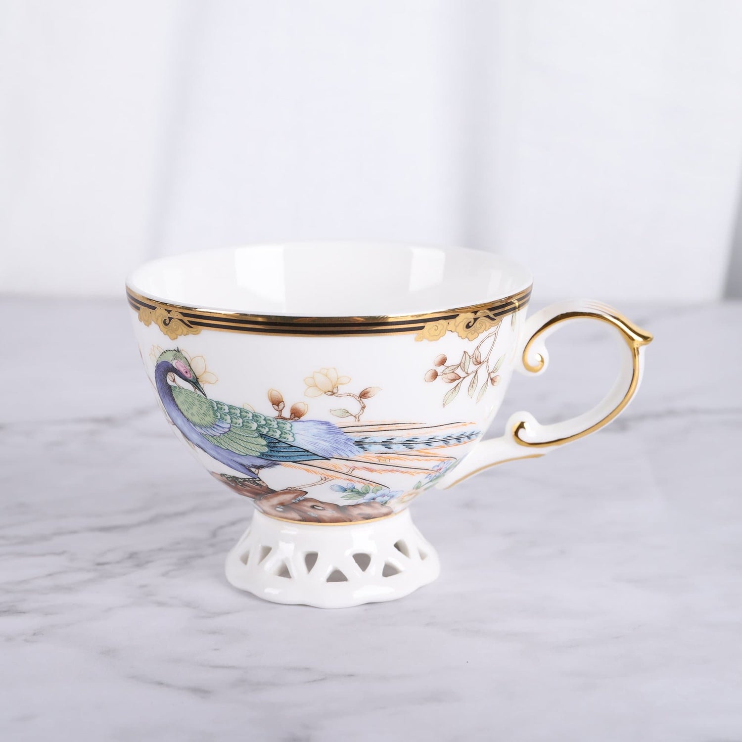 Purple Bird Bone China Coffee Cup