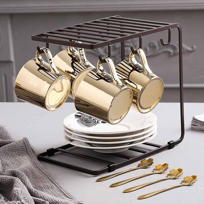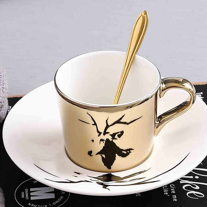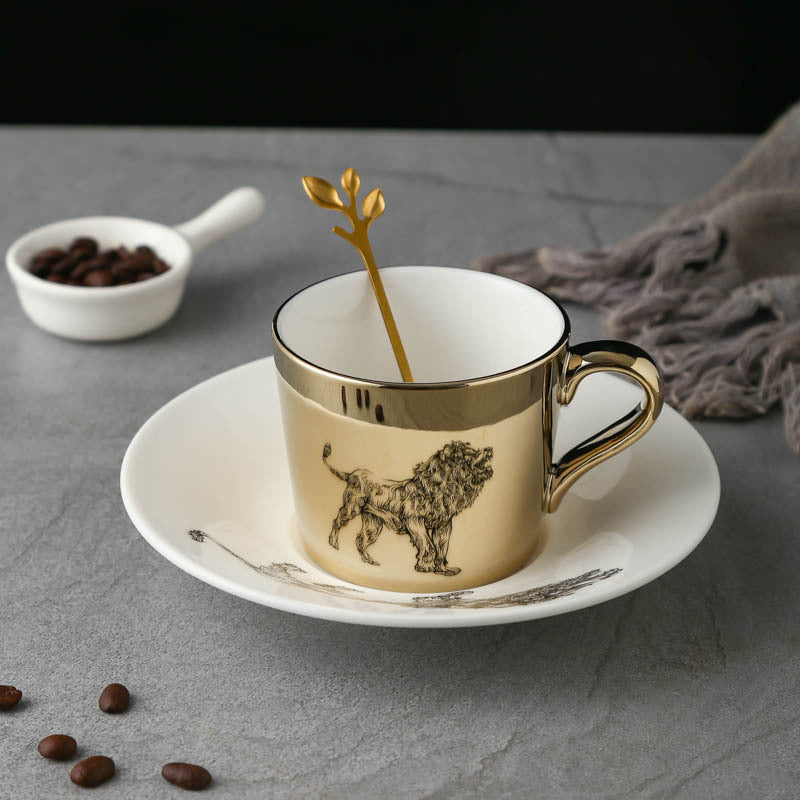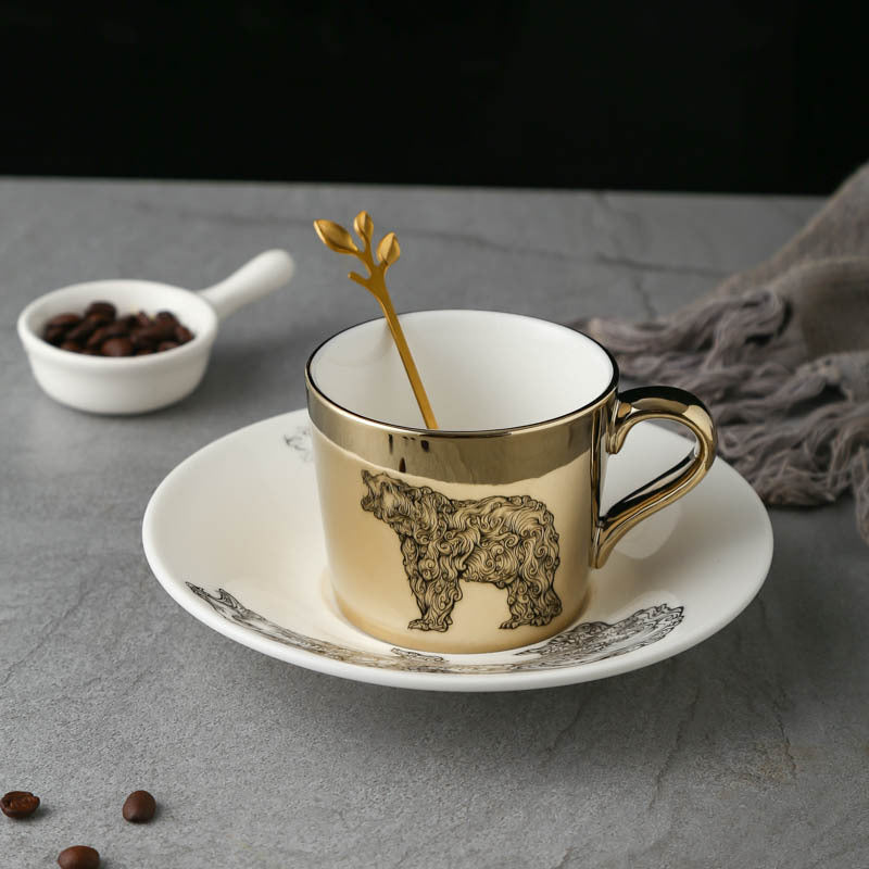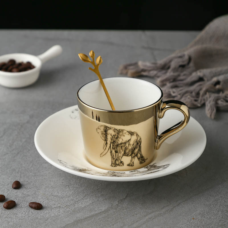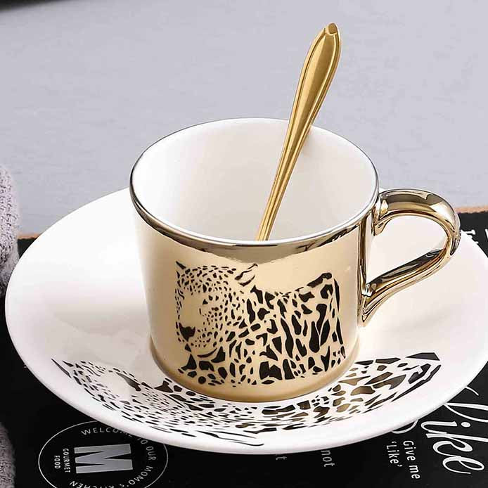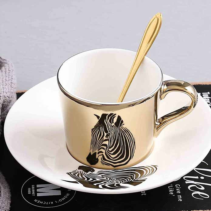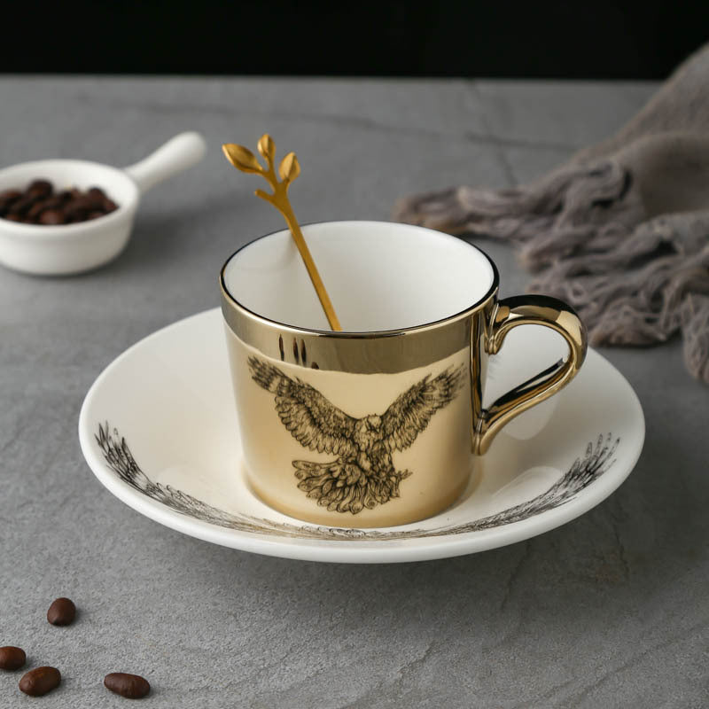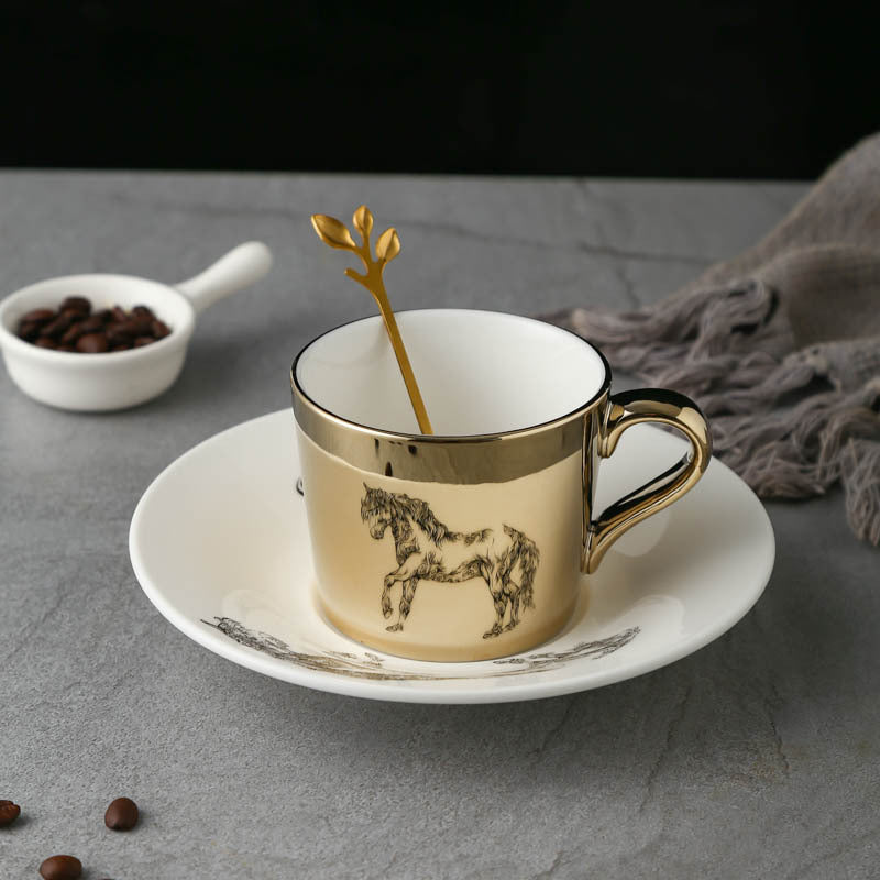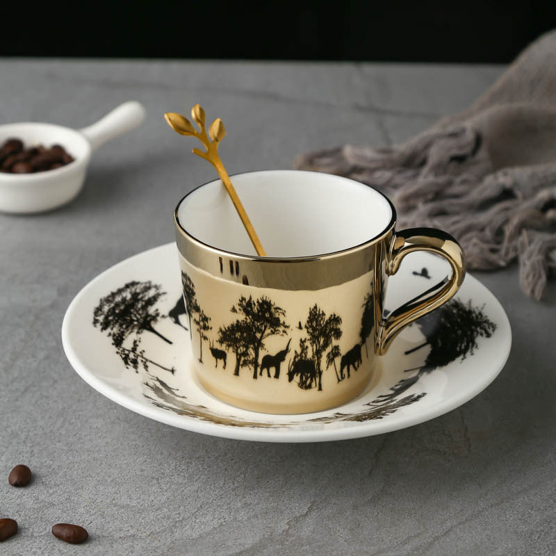 Reflection Ceramic Coffee Cup, European Electroplated Mirror Coffee Cup and Saucer Set