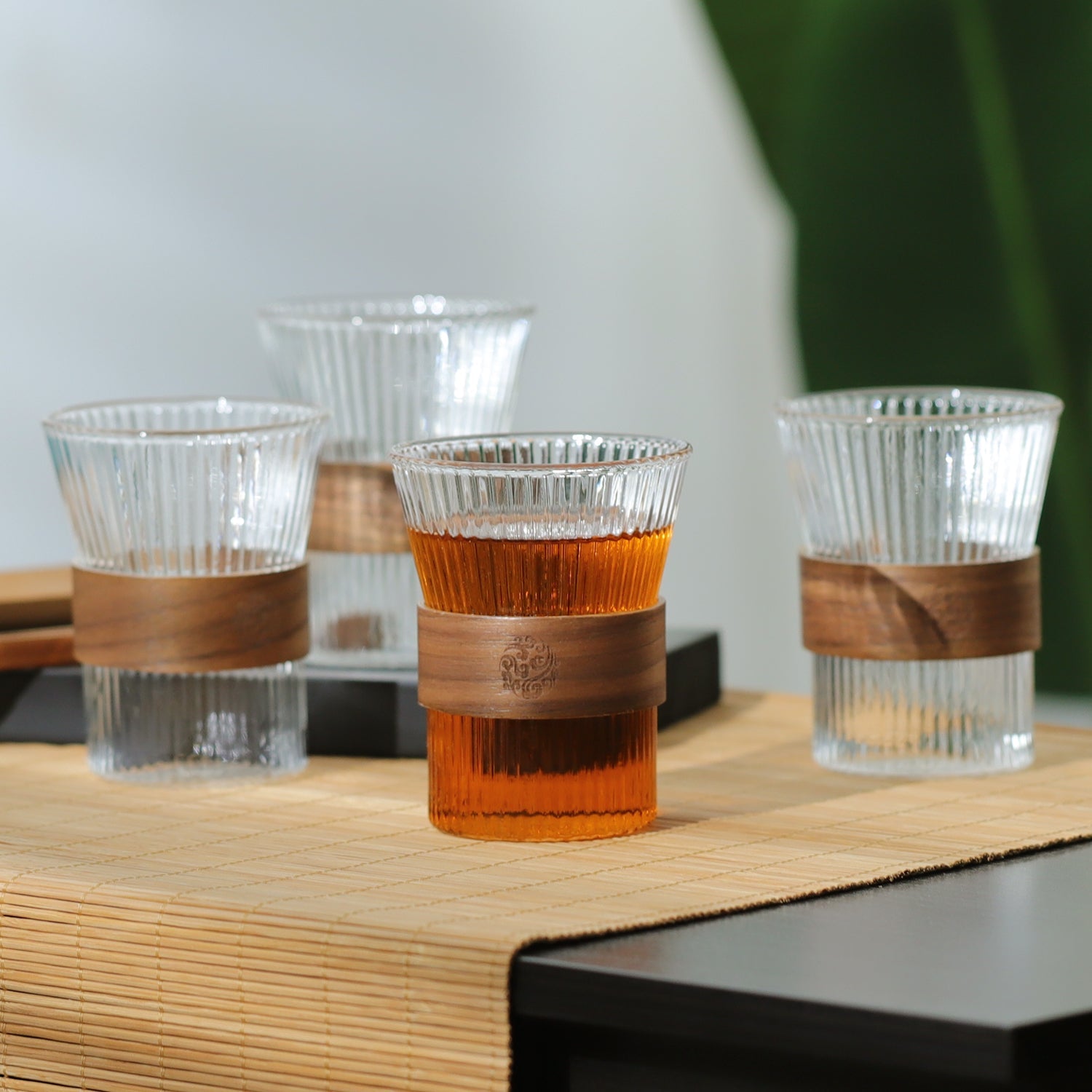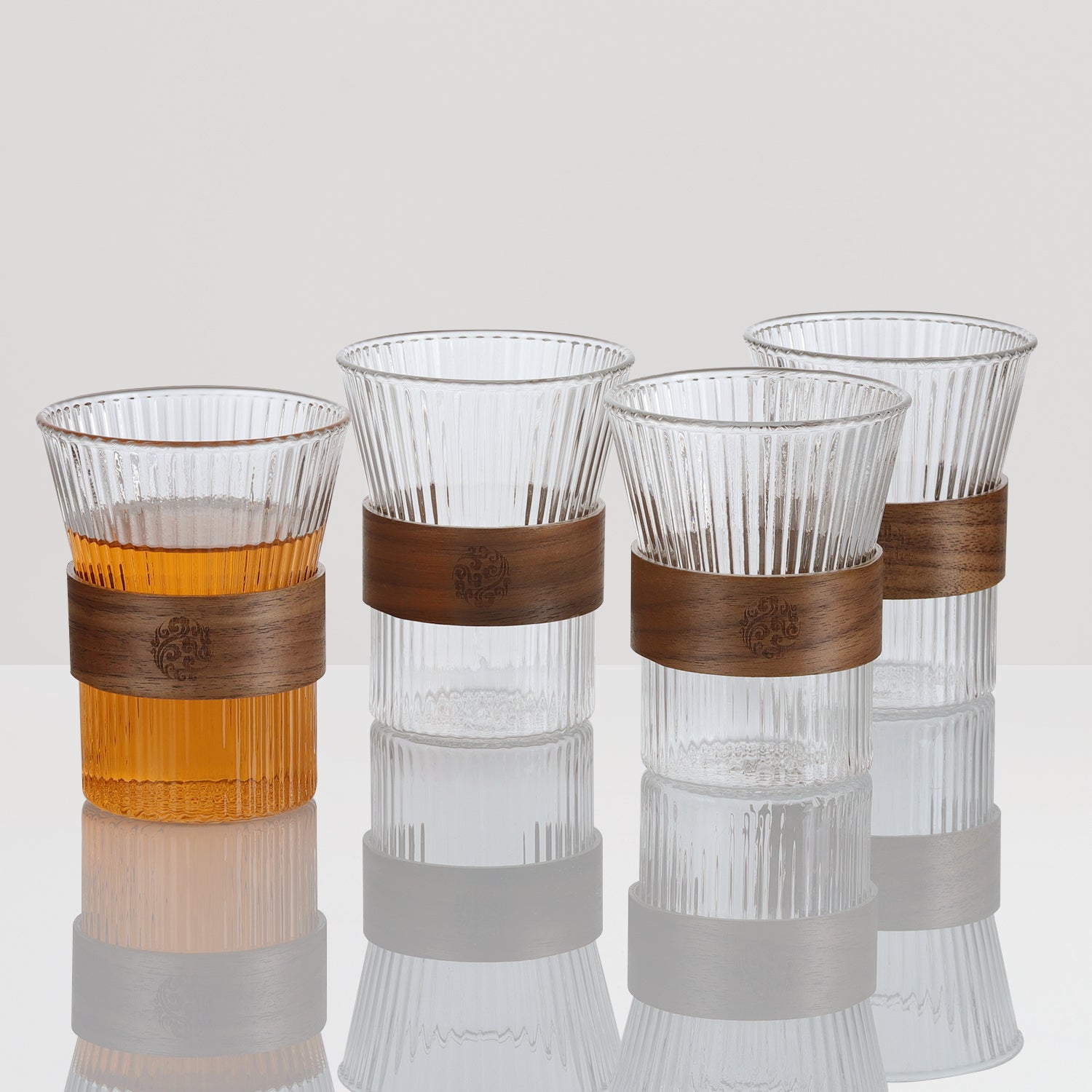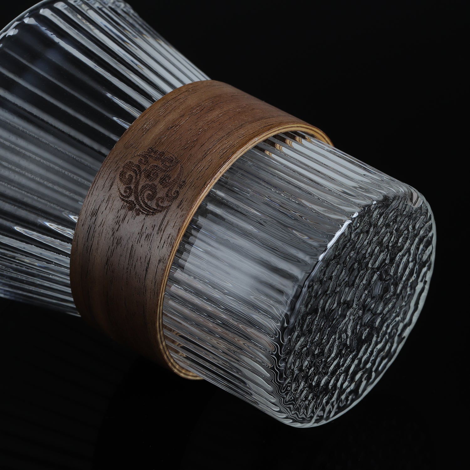 The clear glass is embossed and the classical wooden buckle is both beautiful and just right to be non-slip and heat-resistant.