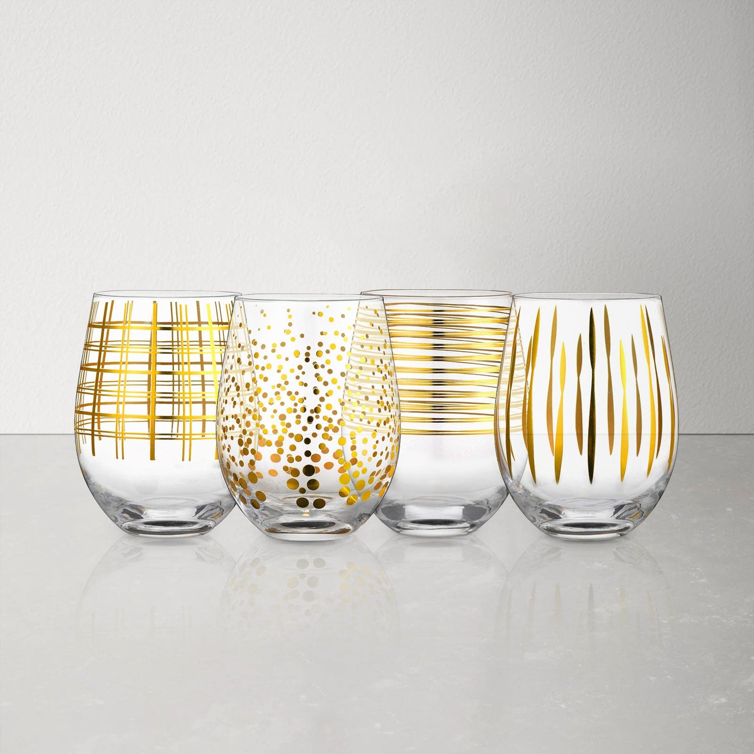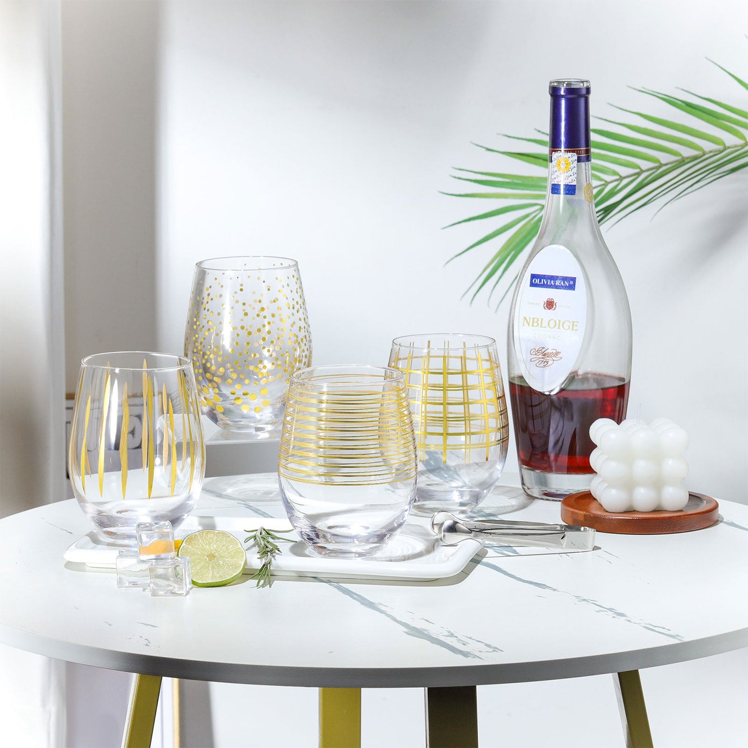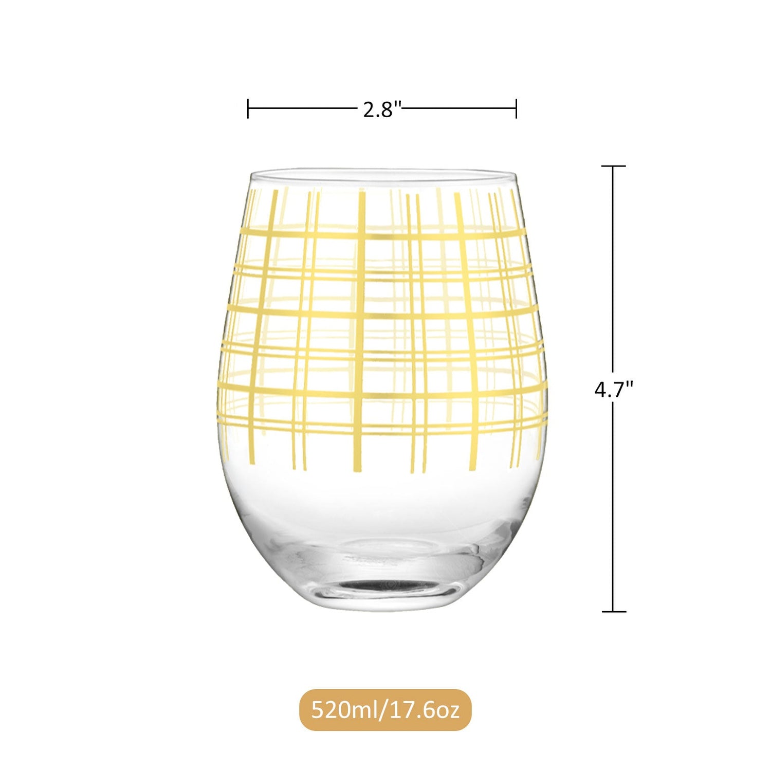 -- Design: This set of wine glasses with shimmering dots, lines and swirls through gold decals and etching craftsmanship, making each glasses distinctly different. Unique design adds a different taste to you, let you enjoy drinking time.