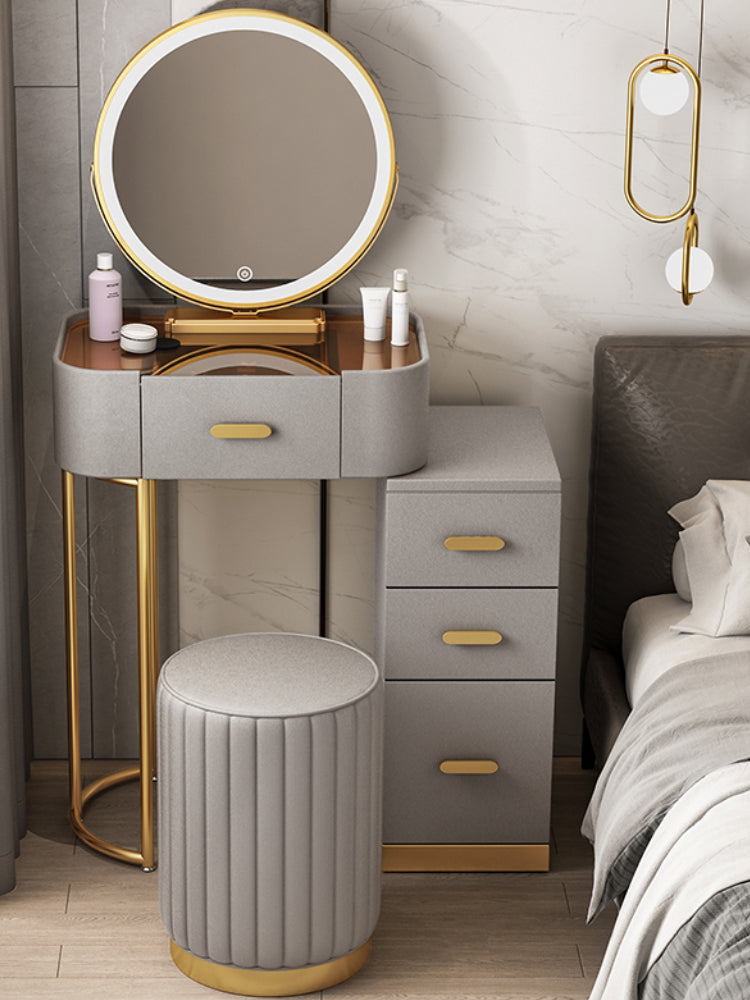 Look no further than LISM's Modern Luxury Vanity! This piece offers ample storage space in the form of four drawers, perfect for keeping all of your beauty supplies neatly organized. The contemporary minimalist design is sure to complement any existing decor, while the wooden construction ensures long-lasting durability. And don't forget about the built-in mirror - ideal for checking your makeup before heading out on the town!