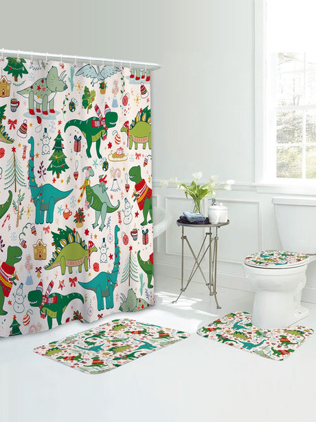 $64.99 USDUnit price /Unavailable4pc Christmas Dinosaur Pattern Bath Rug And Shower Curtain