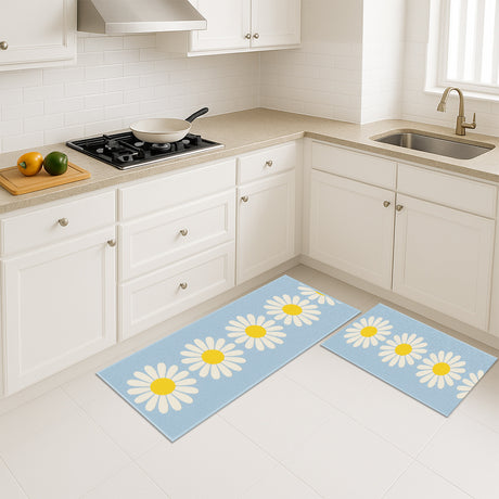 From $36.00 USDUnit price /UnavailableFeblilac Blue Daisy Kitchen Mat Set – Non-Slip Floor Rugs with White Flowers for Sink and Stove Area