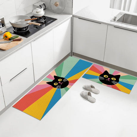 From $37.00 USDUnit price /UnavailableFeblilac Black Cat Colorful Stripes Background PVC Leather Kitchen Mat