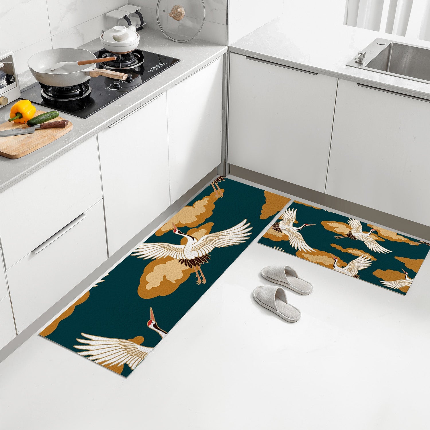Feblilac Blue Background Crane PVC Leather Kitchen Mat - 17.7"x29.5" or 45cm*75cm is backordered and will ship as soon as it is back in stock.