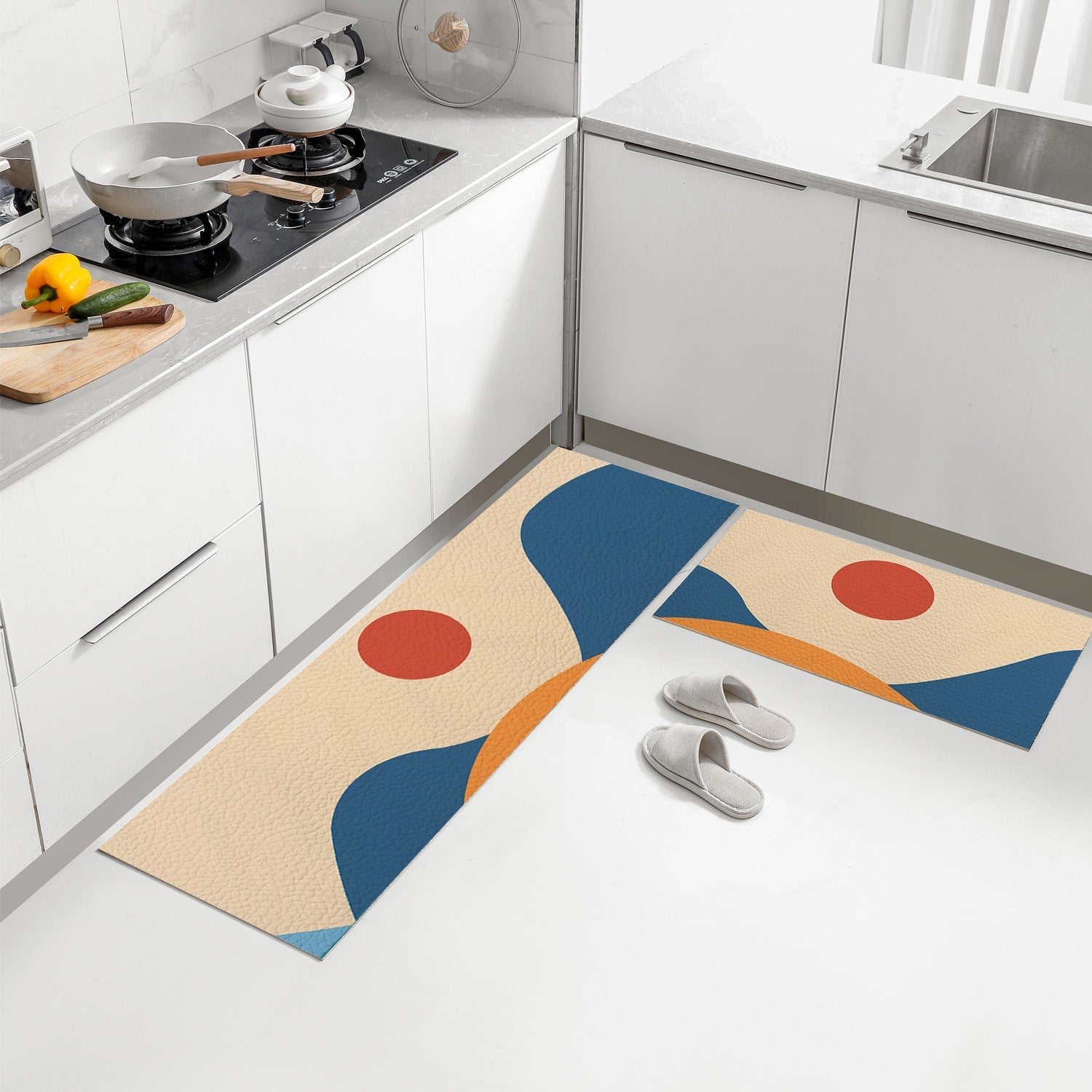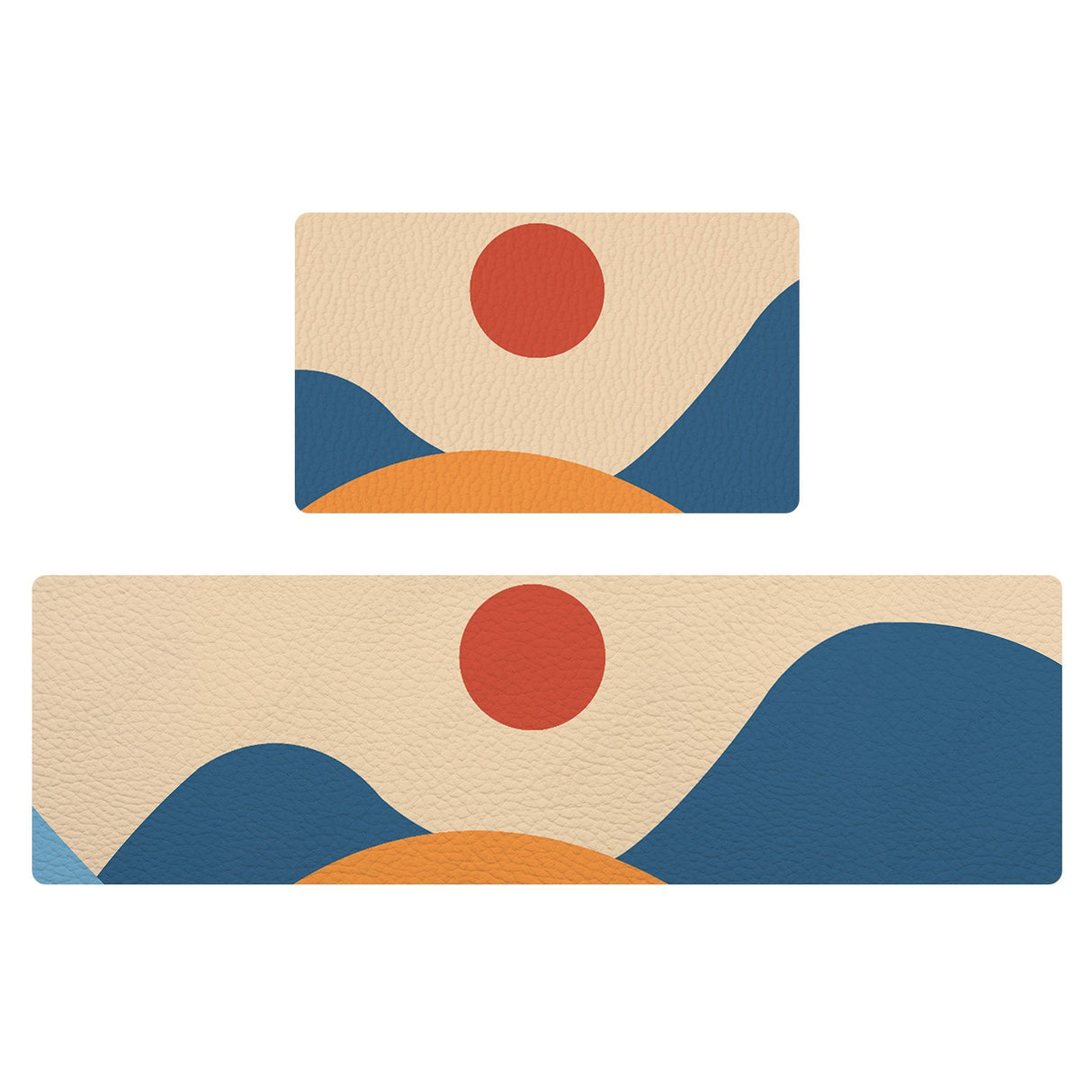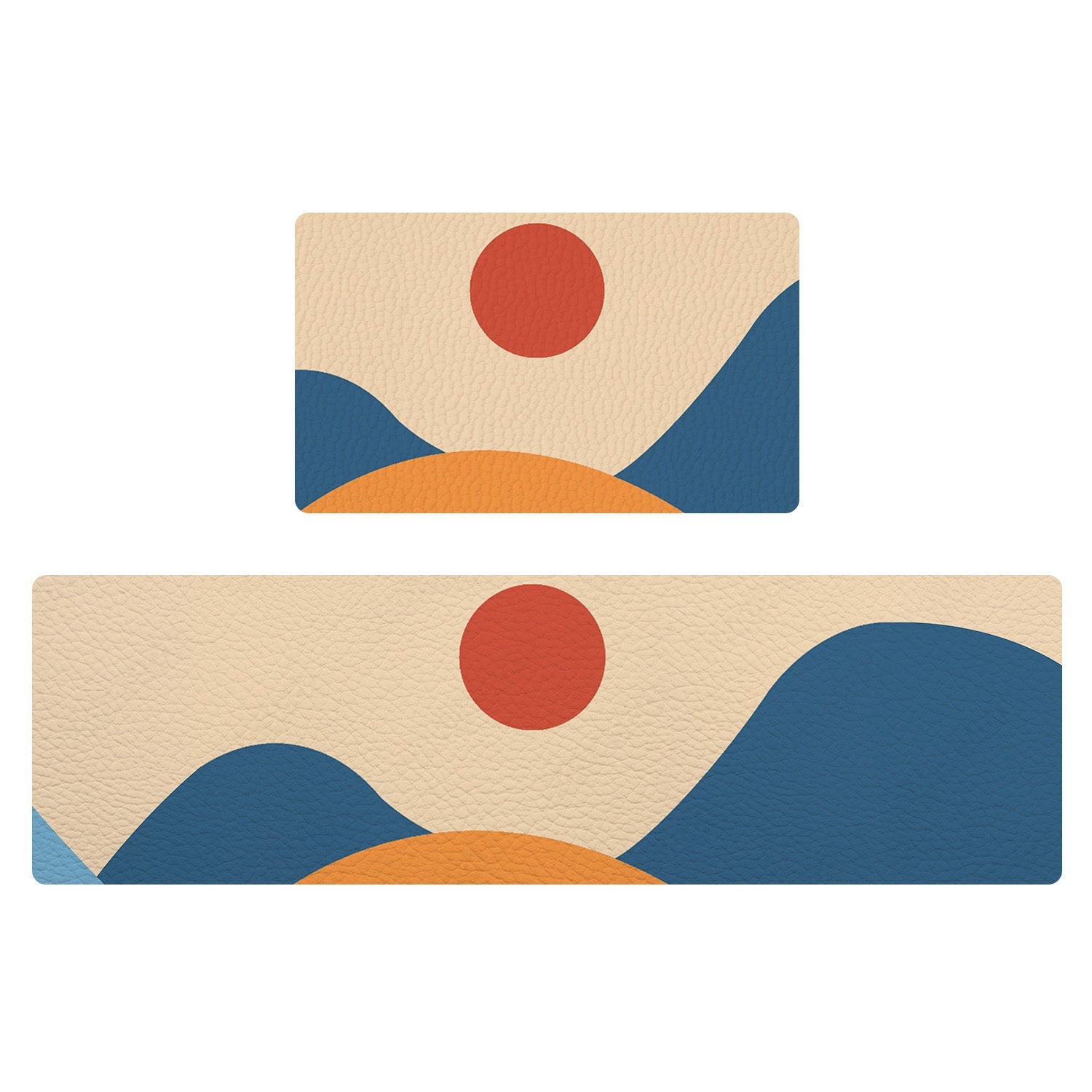 Feblilac Red Blue Sunset Mountains PVC Leather Kitchen Mat