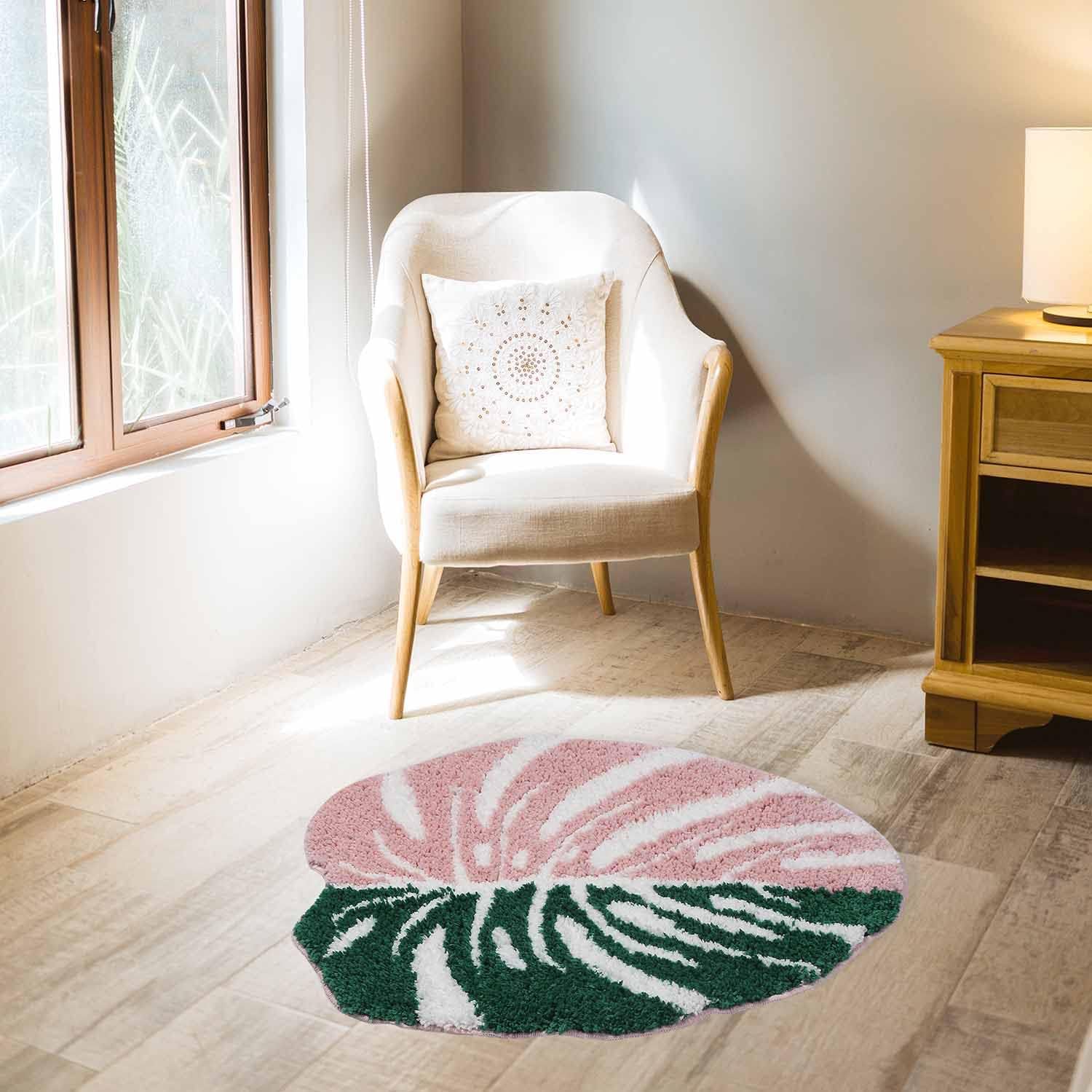Feblilac Green Leaf Bath Mat, Cute Monstera Bathroom Rug with Non Slip Back Strong Water Aabsorbent, Thick Soft Microfiber Plant Leaf Bath Rugs for Bathroom Floor, Bathtub, Shower, Sink and Decor