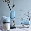 These vases are stunning in their statuesque design. The layered design with its translucent blue color creates an alluring accent piece that will surely give your space a calming artistic feel. These vases embody natural artistry while creating a striking design that will make any space feel special. Group these vases together for a beautiful display.