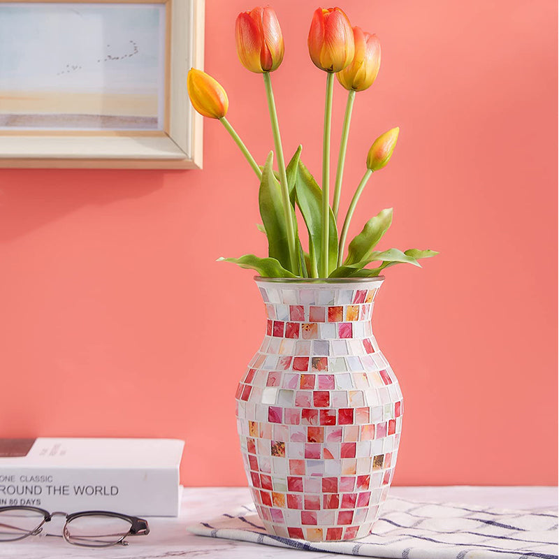 A beautiful twist of old and new makes this Mosaic Glass Vase a timeless piece to own.