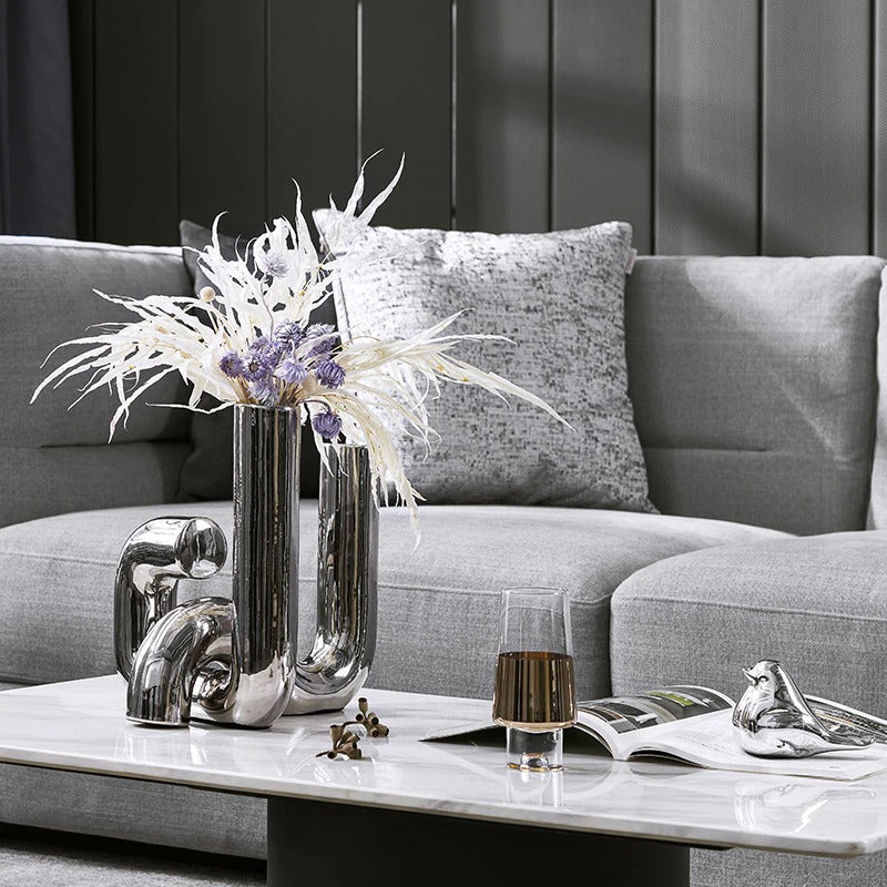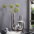 Twists and turn define the beauty of this vase. This two part vase will give any floral display a dramatic touch or display alone. Each piece looks great alone but when combined, these pieces create a bold modern display. The quality of the the vase and its finish add dimension to the vase making it a focal point of any space.