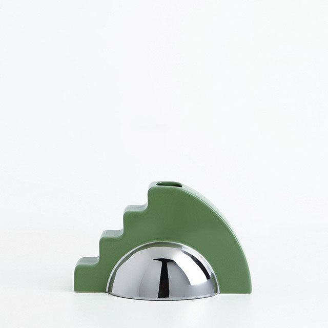 Wavy twists and turns embellished with the beauty of silver give this vase an artsy look. These vases will give any floral display a dramatic touch or display them alone. Each piece looks great alone but when combined, these pieces create a bold modern display. The quality of the the vase and its finish adds dimension to the vase making it a focal point of any space.