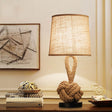 1-Bulb Bucket Shade Table Light Rustic Flaxen Fabric Night Lamp with Twisted Rope Base