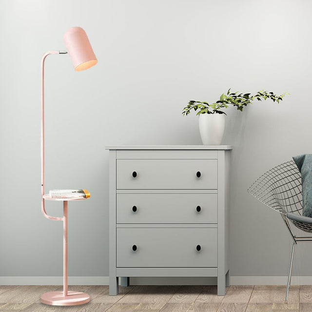 1 Bulb Metal Floor Light Warehouse Pink/Yellow/Green Bell Shaped Living Room Floor Reading Lamp with Wood Shelf Deco
