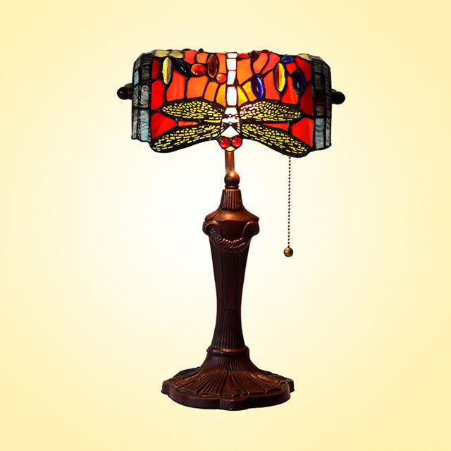 1 Light Banker Desk Lamp Mediterranean Dragonfly Hand Cut Glass Pull Chain Table Lighting in Red - Red is backordered and will ship as soon as it is back in stock.