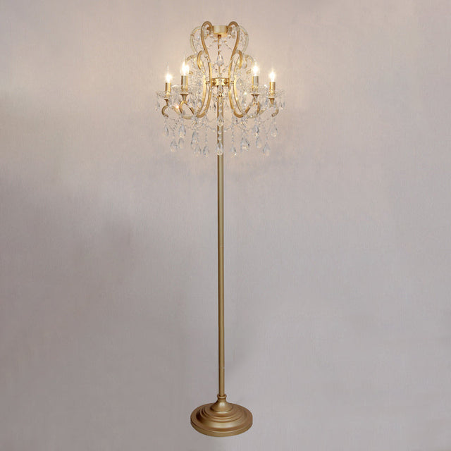 5 Bulbs Scroll Frame Floor Lighting Classic Style Gold Metal Standing Floor Lamp with Crystal Strand