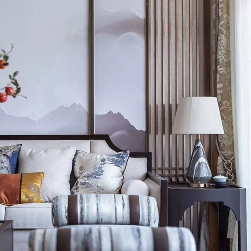 Ceramic Diamond Shaped Night Light Nordic Single Table Lamp with Fabric Empire Shade