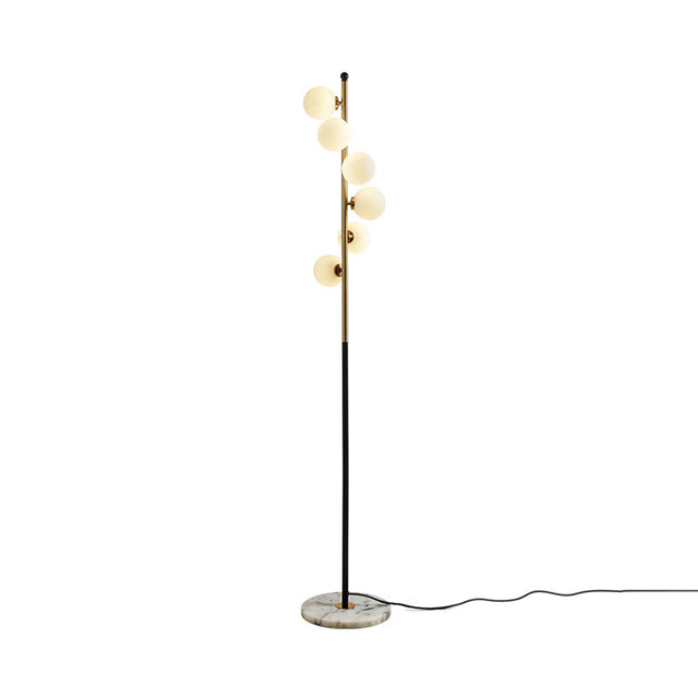Gold and Black Ball Floor Lighting Minimalist 6-Bulb Cream Glass Standing Floor Lamp with Spiral Design